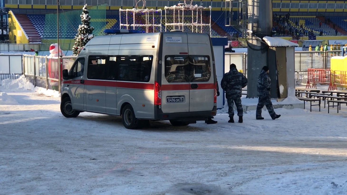 Стандартный контроль перед входом на территорию "Зоркого" ничем не запомнился. На входе не первый год посетителей стадиона встречает памятник легенде отечественного хоккея с мячом Евгений Михайлович Папугин, намекая какой все-таки вид спорта в городе номер один. Над трибунами тем временем разносился гимн России, а прям около сектора я увидел не традиционный фудкорт с теплым чаем, а газельку с сотрудниками ОМОНа.