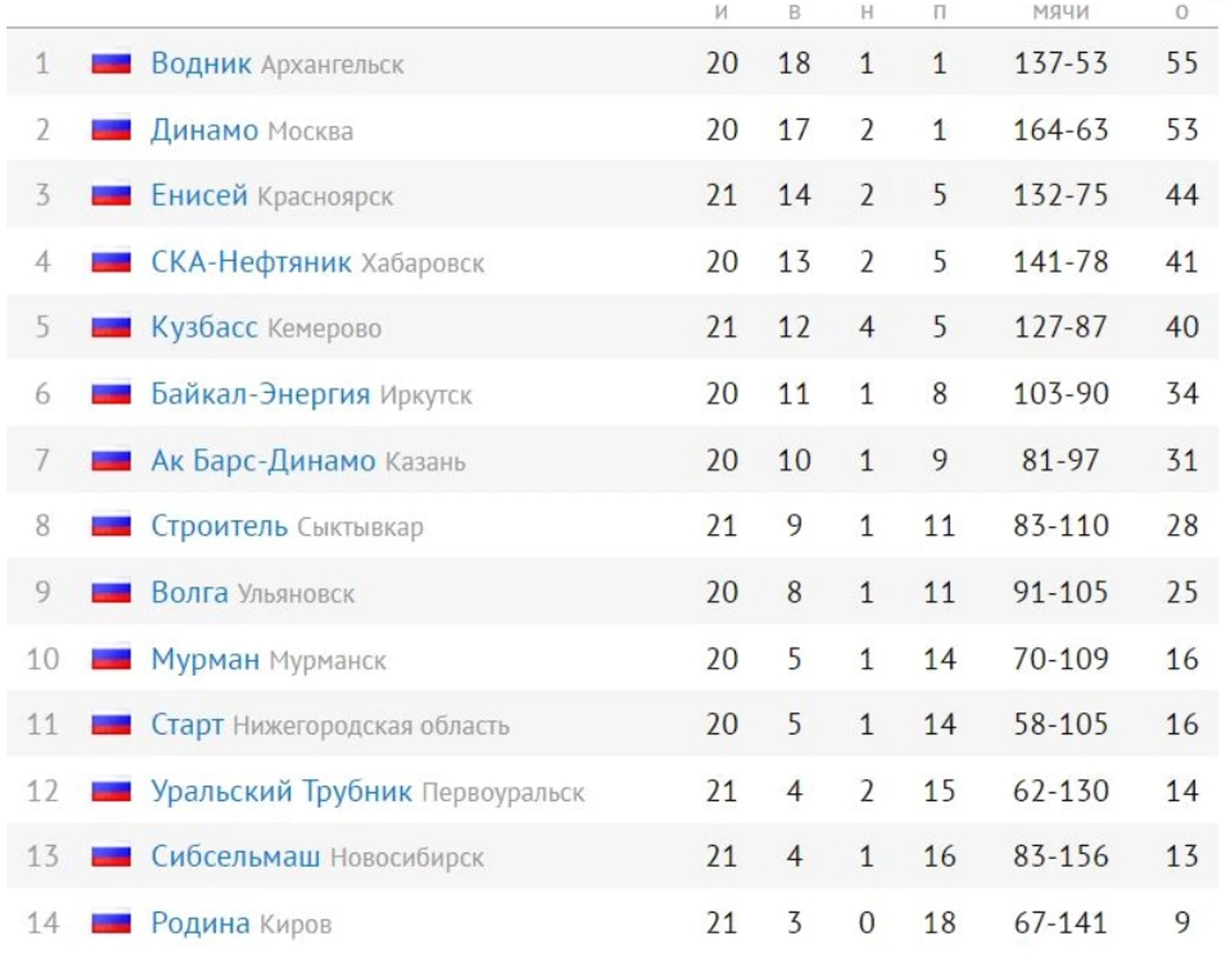 "Строитель" уже на 9-ой позиции, а "Волга" - на 8-ом. "Енисей", "Кузбасс" и "СКА-Нефтяник" разделяет лишь 3 очка.