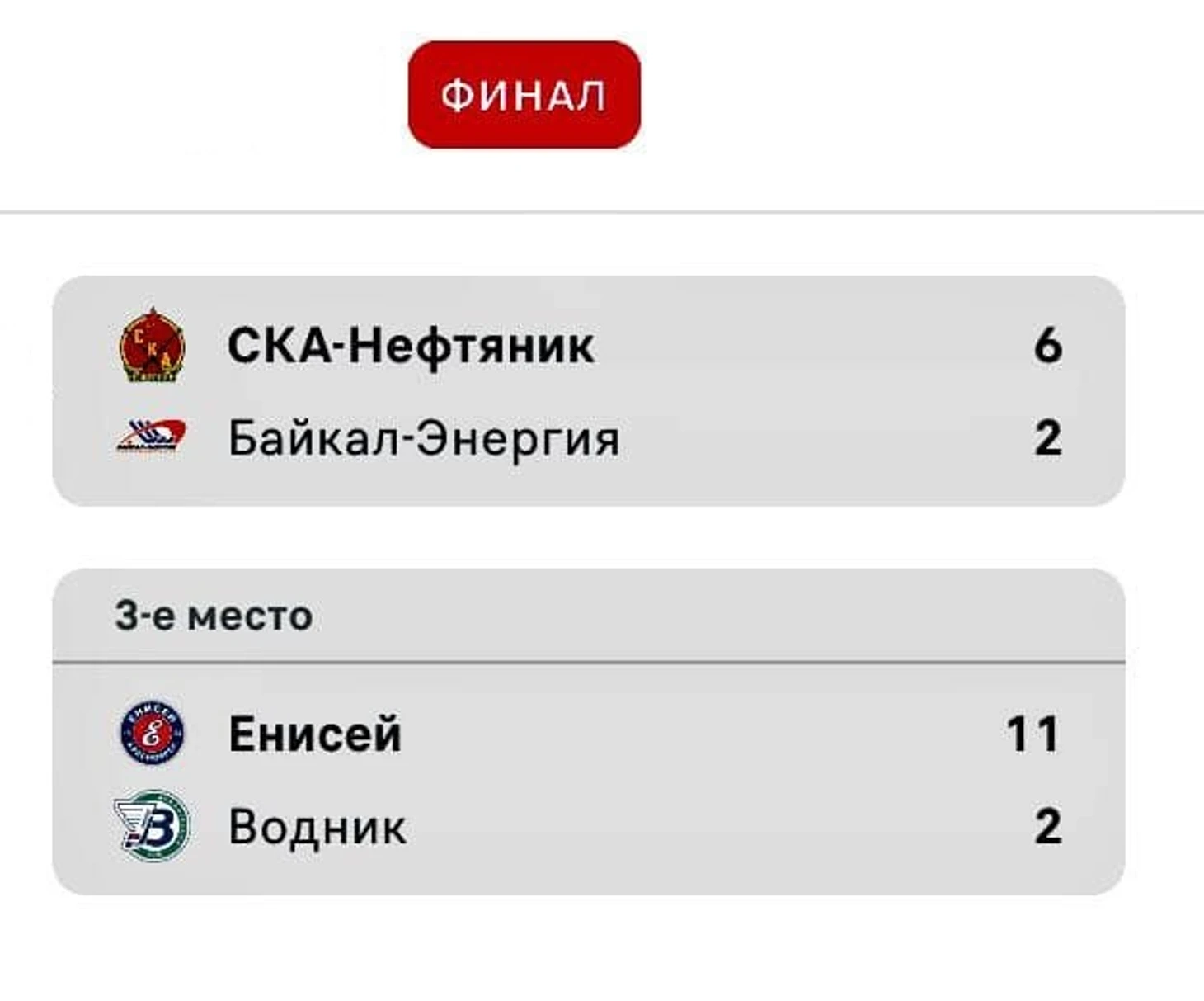 Итог: "Кузбасс" - 55, "Енисей" - 53 и "СКА-Нефтяник" - 53.