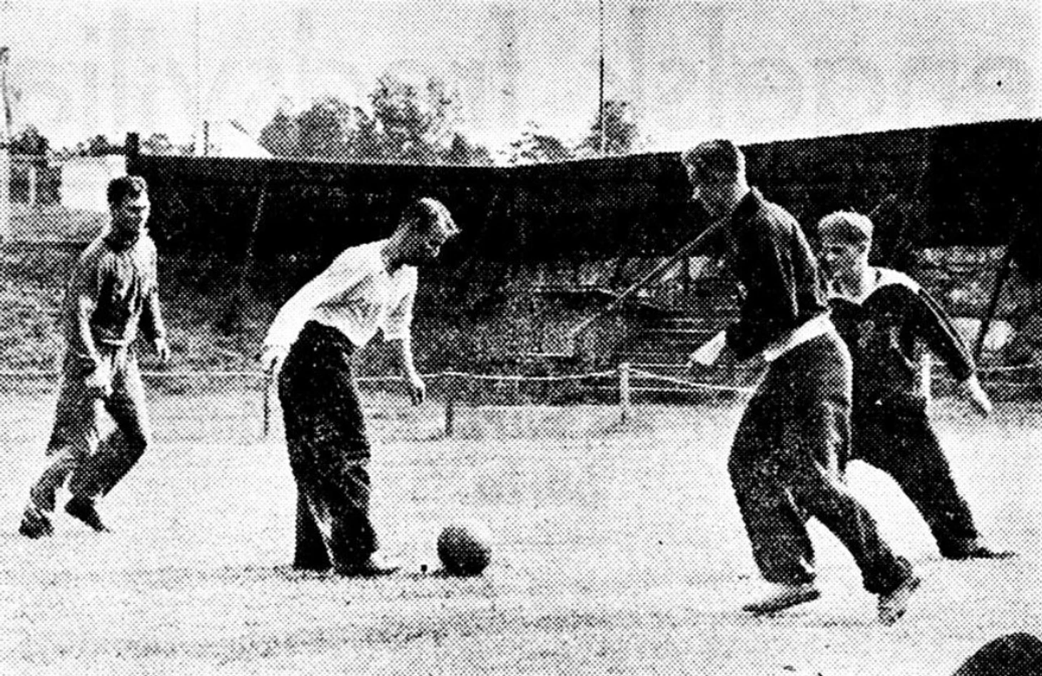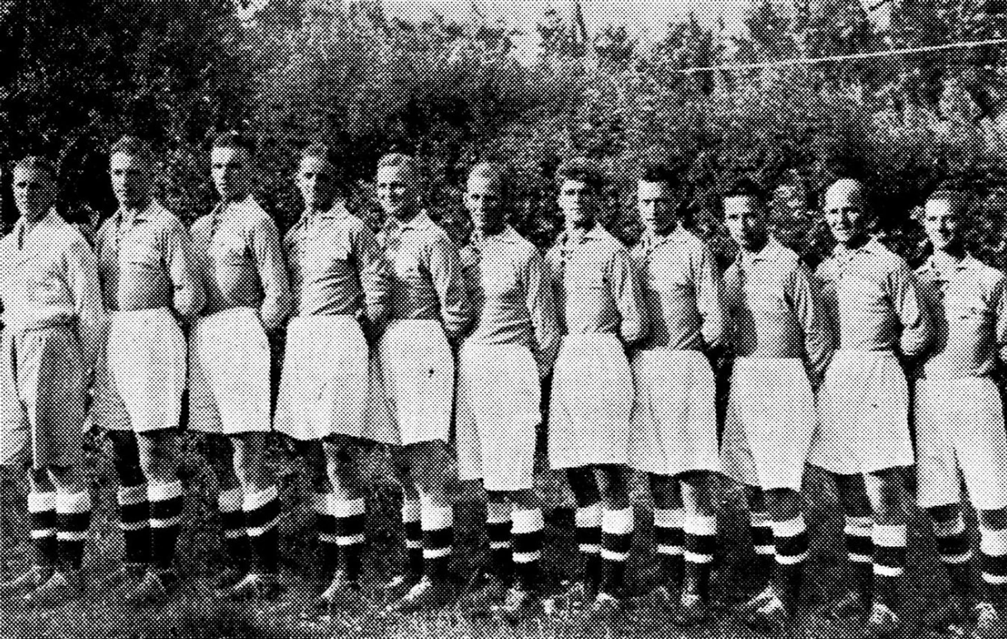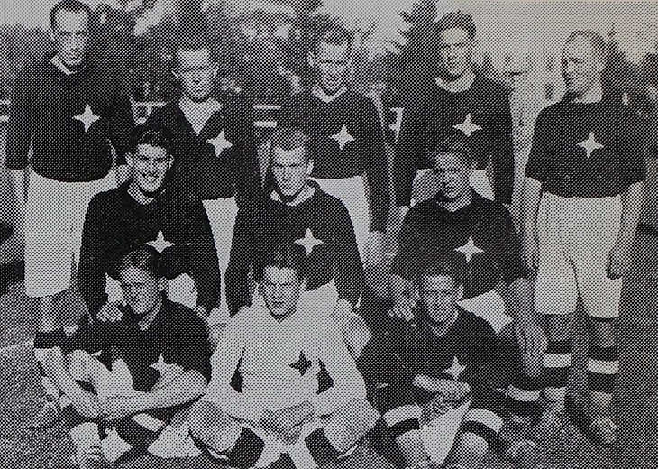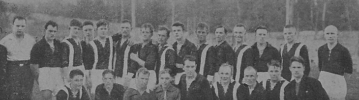 11 мая 1941 года. Турку. Чемпионат SPL по футболу 1940/41. ТПС / «Турун Паллосеура» - ХИФК - 2:2. Франс Карягин - второй справа (на колене). Фото из газеты «Хювюдстадсбладет» за 2 апреля 1941 года