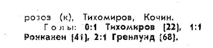 «Из состава лучших футбольных клубов нашей ассоциации была собрана такая сильная команда, которую вряд ли собирали ранее. Если бы Лехто, который никак не может уладить свои дела на работе, поставить в защиту, команда была бы максимально идеальной. Но, как говорится, она сильна и сейчас. В том числе и об этом говорили русские, побывавшие здесь в пятницу. И хотя мы знаем, что российские спортсмены очень вежливы и тактичны, они совершенно искренне уверяют, что наша команда «пугающе» сильна и стала теперь значительно лучше. Обязанности вратаря в нашей спартакиадной команде возложены на двух абсолютных лучших игроков TUL Халме из «Юрю» (Хельсинки) и Рантанена из «Куллерво» (Хельсинки); последний будет в резерве. Имена Карягина, Векстрёма, Л. и Т. Кекконенов, Ронканена, Пректига, Спети, Термана, Фрии, Фёрстена, Нюстрёма, Грёнлунда, Саволайнена говорят сами за себя» (журнал «Тюёвяен урхейлулехти» № 33 от 16 августа 1928 года).