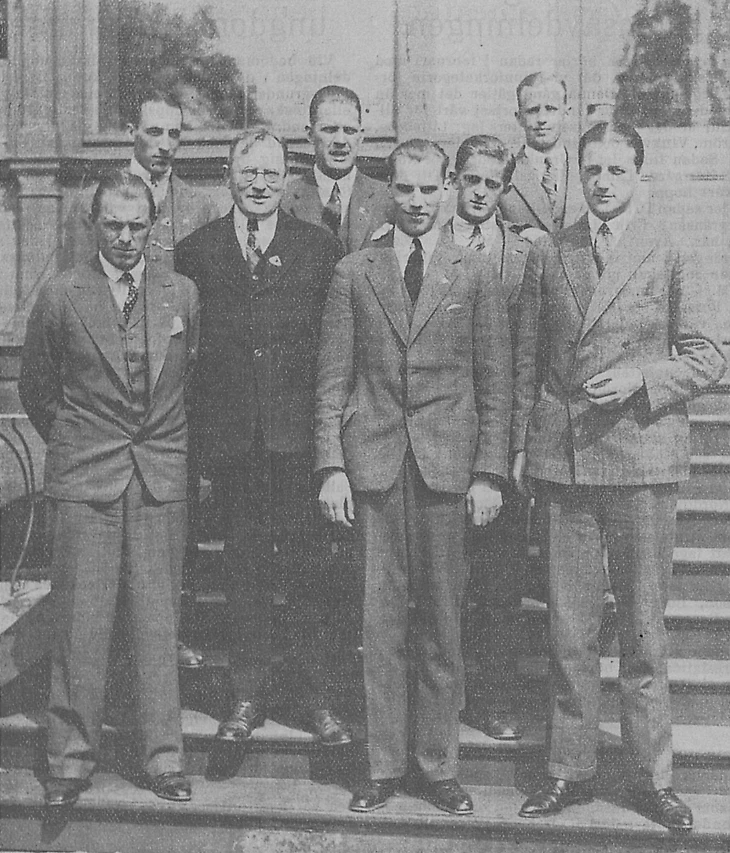 10 августа 1928 года. Хельсинки. Стадион «Тёёлён Паллокенття». Подготовка к Спартакиаде КСИ. Финляндия (TUL) - Ленинград - 2:4 (1:2). Совместное фото (хозяева в комбинированной форме) из газеты «Тюёвяеньярьестёен тиедонантая» от 11 августа 1928 года