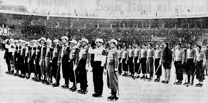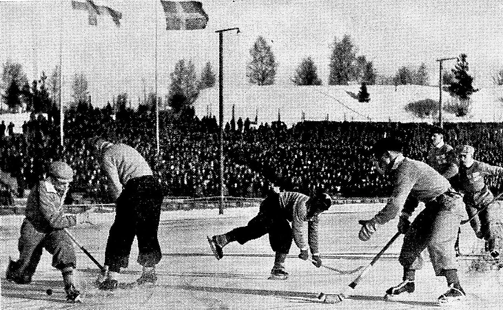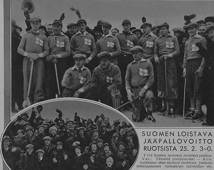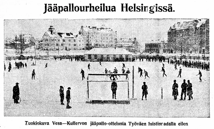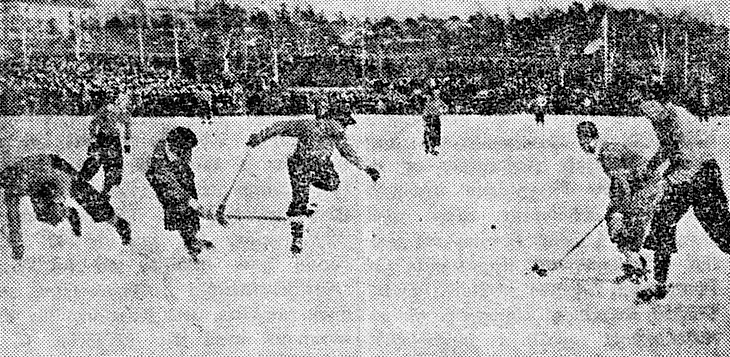 1 января 1928 года. Хельсинки. Стадион «Тюёвяен Луйстинрада». Чемпионат TUL по хоккею с мячом. «Веса» (Хельсинки) - «Куллерво» (Хельсинки) - 2:1 (фото из газеты «Тюёвяеньярьестёен тиедонантая» от 2 января 1928 года)