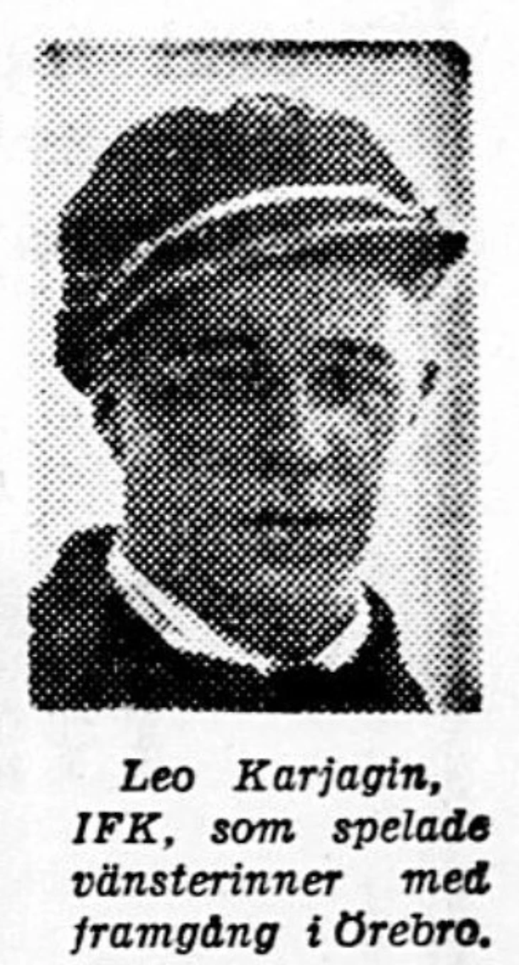 «Лео Карягин (ИФК), который успешно сыграл на левом фланге в Эребру» (газета «Хювюдстадсбладет» от 4 января 1941 года)