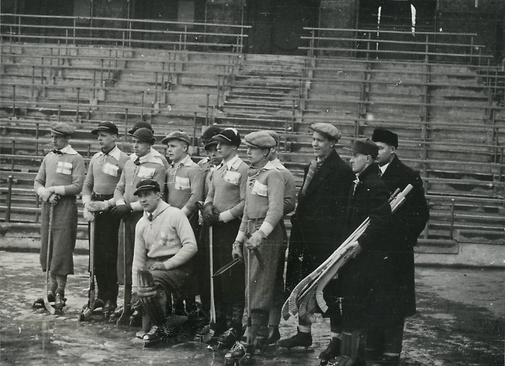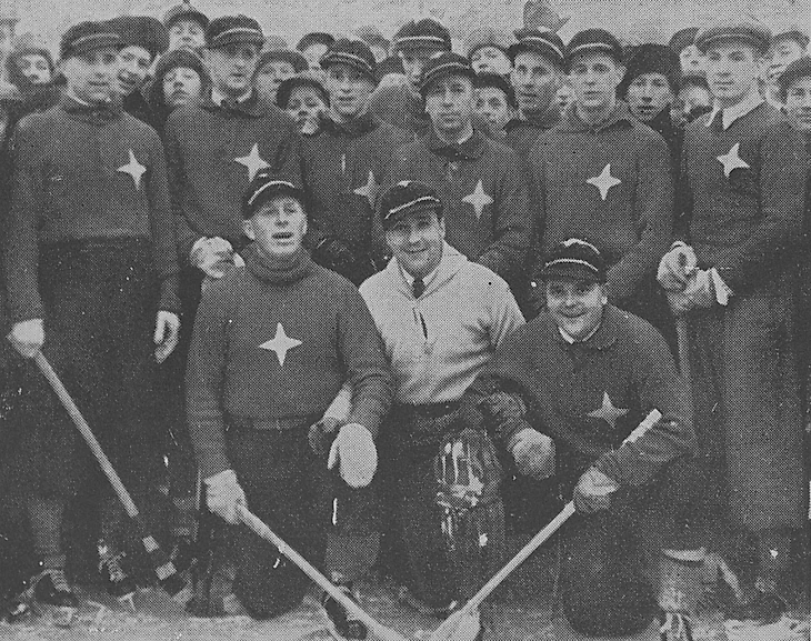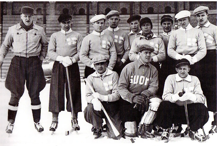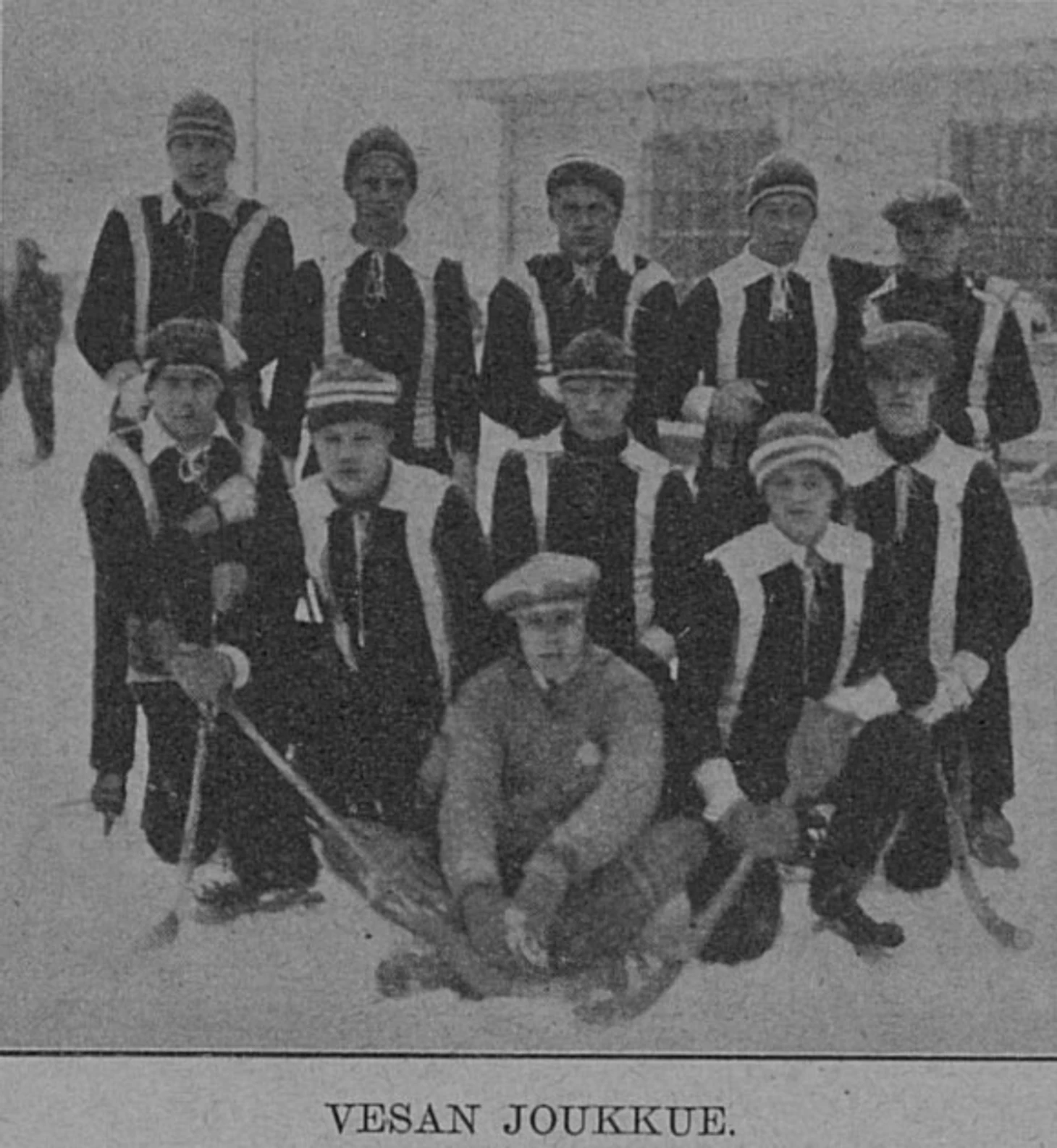 Февраль 1928 года. Хоккейная команда «Веса» из хельсинского района Тёёлё (журнал «Тюёвяен урхейлулехти» № 7 от 16 февраля 1928 года)