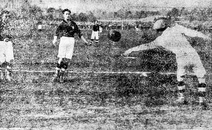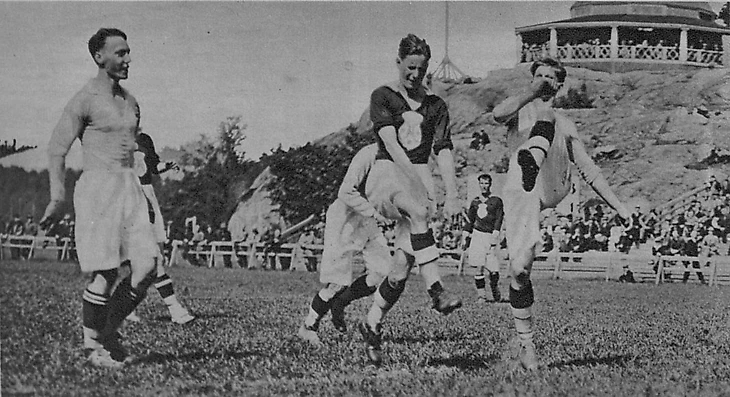 4 августа 1939 года. Хельсинки. Олимпийский стадион. Товарищеский матч. Финляндия - Эстония - 4:2 (0:1). Атака эстонцев (газета «Хювюдстадсбладет» от 5 августа 1939 года)