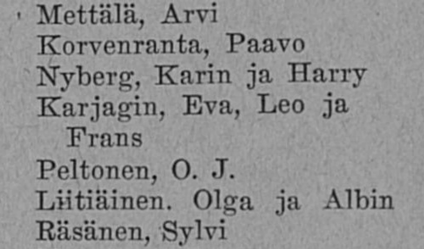 Карягины среди адресатов рождественского поздравления от хельсинского отделения TUL (еженедельник «Тюёвяен урхейлулехти» № 48-49 от 7 декабря 1928 года)