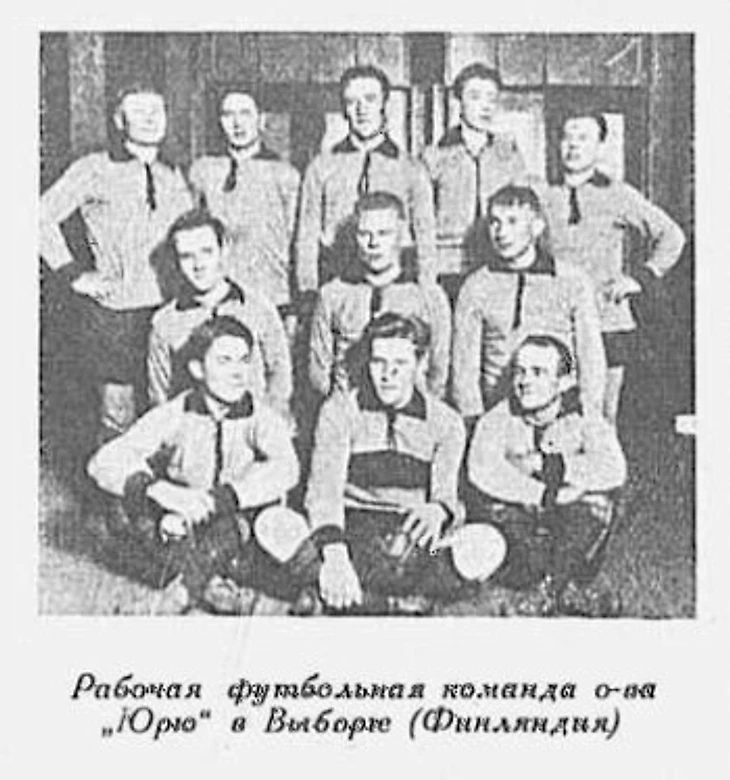 1929 год. Футбольная команда «Юрю» (Выборг). Фото из еженедельного журнала «Физкультура и спорт» № 49 за 7 декабря 1929 года