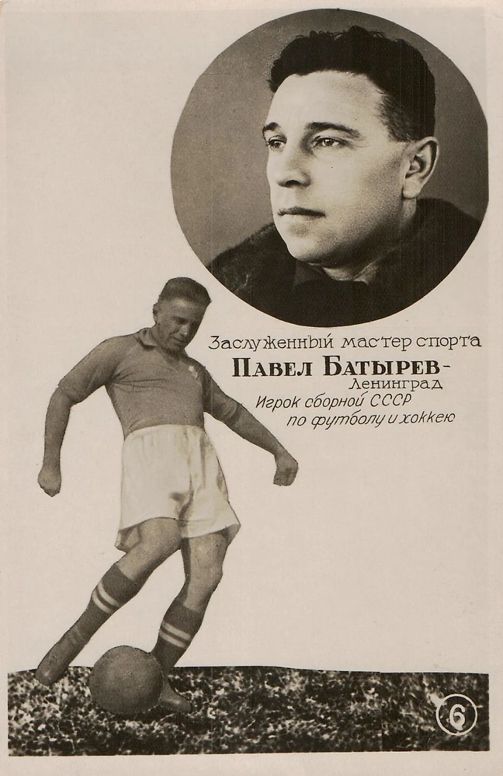 Лучший игрок матча «Юрю» (Хельсинки) - СССР, по мнению газеты «Тюёвяеньярьестёен тиедонантая», капитан и левый полузащитник советской сборной Павел Батырев (открытка из набора «Заслуженные мастера спорта» (22 человека; у Батырева знак ЗМС № 5 во всем советском спорте, в футболе второй после М. Бутусова), 1934 год)