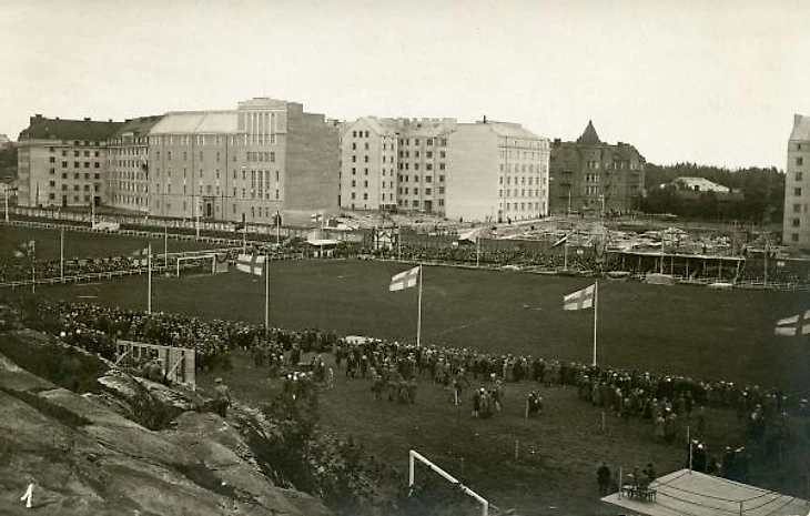 3 июня 1928 года. Хельсинки. Стадион «Тёёлён паллокенття» (фото из газеты «Хельсингин саномат» от 4 июня 1928 года)