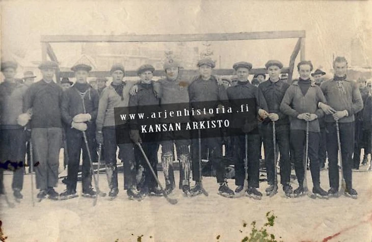 1924 год. Чемпион TUL по хоккею команда «Юрю» (Хельсинки), обыгравшая в решающем матче «Тампереен кисатоверит» (Тампере) со счетом 6:2 (arjenhistoria.fi)