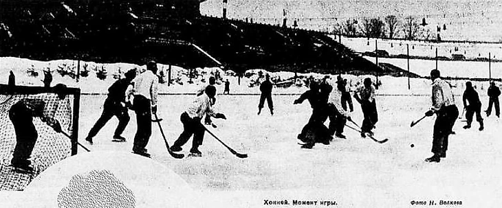 В начале тридцатых годов прошлого века хоккей еще не был хорошо знаком всем москвичам: «В сумерках укороченного дня на московских улицах и трамваях (выходной день 6 января) можно было видеть «молодого человека XX века» с чемоданом и изогнутой палкой в руках. В чемодане отдыхали коньки типа «Гаген», изогнутые «палки» - именуются «клюшками»… Москва знакома с игрой «хоккей» значительно меньше чем, допустим, с футболом, и на улицах и в трамвае «клюшки» вызывают долгий, любопытный взгляд с немым вопросом: «А на каком участке социалистического строительства применим этот странный инструмент?» (газета «Рубильник» от 19 января 1933 года). Но все же ситуация с развитием хоккея за двадцать лет истории этой игры в городе изменилась в лучшую сторону. Вот, что было в начале десятых годов: «В 1912 году была проведена первая междугородняя встреча студенческих команд Москвы и Петербурга. <…> На вокзал собрались за полчаса. Заняли в буфете столики и решили «кутнуть» - выпить по бокалу пива. Публика была ошарашена - студенты и вдруг… с палками. Растерялся и буфетчик. На всякий случай послали за жандармом. Когда выяснилось, что палки принесены для игры в мяч, наступило успокоение умов. Некоторые даже решились потрогать клюшки. Кто-то даже поощрял: «Очень похвально. В Англии, говорят, все студенты в мячики играют». Весь вагон, весь поезд узнали, что едут хоккеисты, а хоккей это такая интересная игра, которую обязательно надо посмотреть завтра» (из очерка «Воспоминания старого хоккеиста» в журнале «Физкультура и спорт» № 3 за 1935 год). Некоторой рост наметился в начале двадцатых: «Оживление спортивной жизни Москвы, начавшейся в минувшем году, коснулось и хоккея. Календарь игр на зиму 1922-1923 года надо считать очень интересным и ничуть не уступающим, если не превосходящим последние годы перед войной. Сравнительно малораспространенный и трудный вид спорта привлек в настоящем году громадное количество любителей (некоторые клубы насчитывают свыше 4-х лиговых команд), в результате чего хоккейная секция, для урегулирования и повышения интереса в розыгрыше первенства Москвы, разделила клубы на два класса» (журнал «Известия спорта» № 1 за февраль 1923 года). «Немного команд выступало на первенстве по хоккею [проходило с 18 по 20 февраля 1927 года в Ленинграде с участием сборных команд Ленинграда, Москвы, Архангельска, Карелии и Твери - примечание «ПСФ»]. Не по карману еще нашему физкультурнику дорогие клюшки, хоккейные коньки и другое снаряжение. Пока не удается удешевить инвентарь, не станет у нас массовой игрой хоккей» (журнал рабочей молодежи «Смена» № 4 за февраль 1927 года). И тем не менее: «Зима 1932-33 годов окончательно подтвердила качественный рост московского хоккея. <...> Москва заняла ведущее положение в хоккее. Помимо роста количества игроков, участвующих в городском календаре (достигшего в этом году огромной цифры в 7 000 хоккеистов), москвичи выработали свой «московский» стиль игры. Этот стиль основан, главным образом, на темпе и на острых комбинациях, заканчивающихся сильными и частыми ударами по воротам» (журнал «Физкультура и спорт» № 4 за 1937 год). Зимой 1933-34 годов в московском календаре приняло участие 44 коллектива на 42 катках. Из них самым вместительным, и не только в Москве, являлся стадион «Динамо», построенный в Петровском парке к Всесоюзной Спартакиаде 1928 года