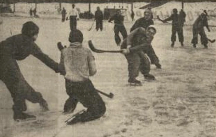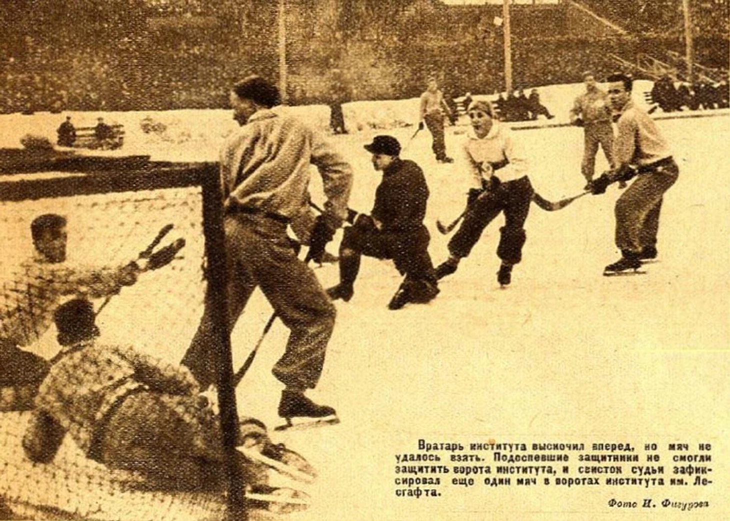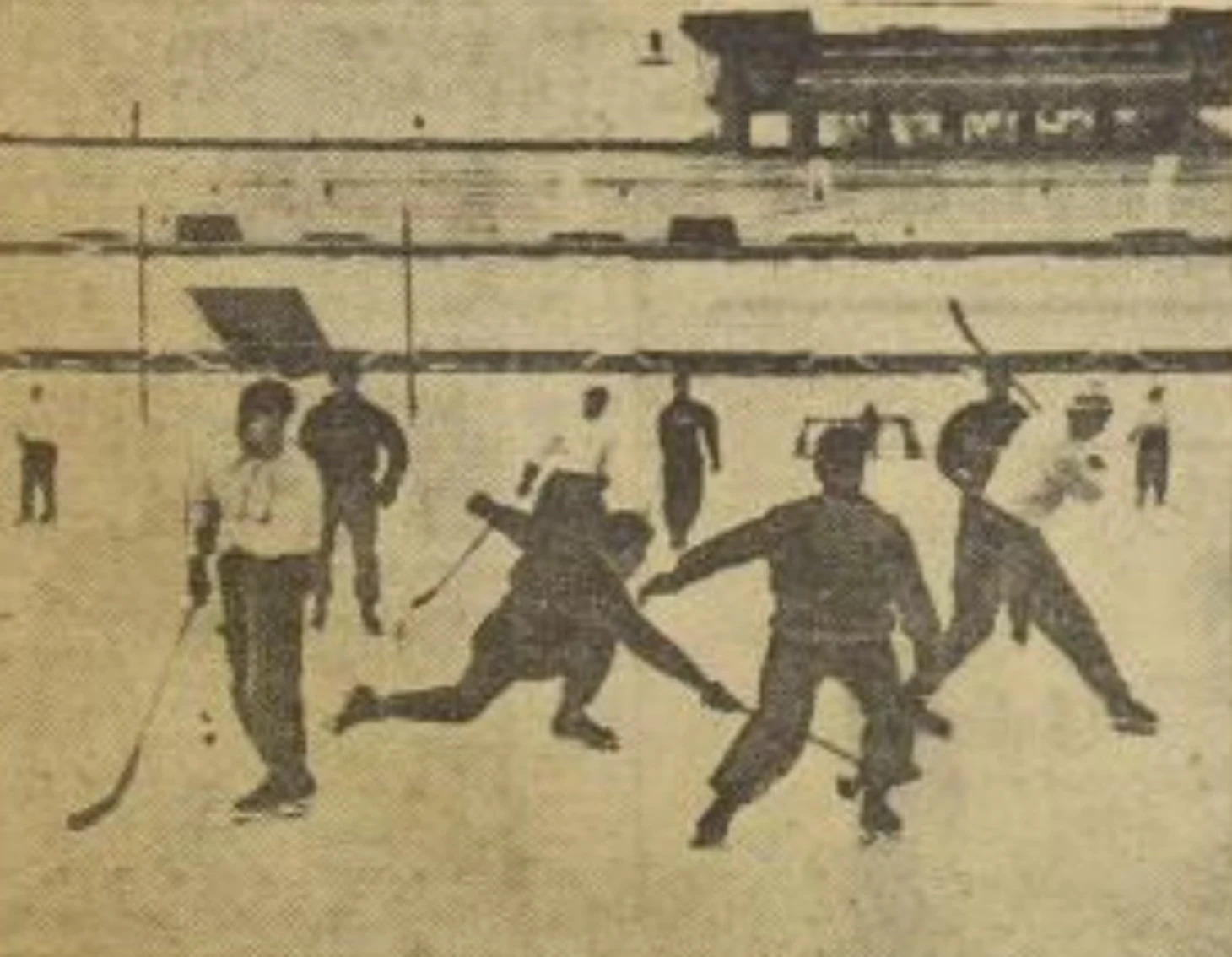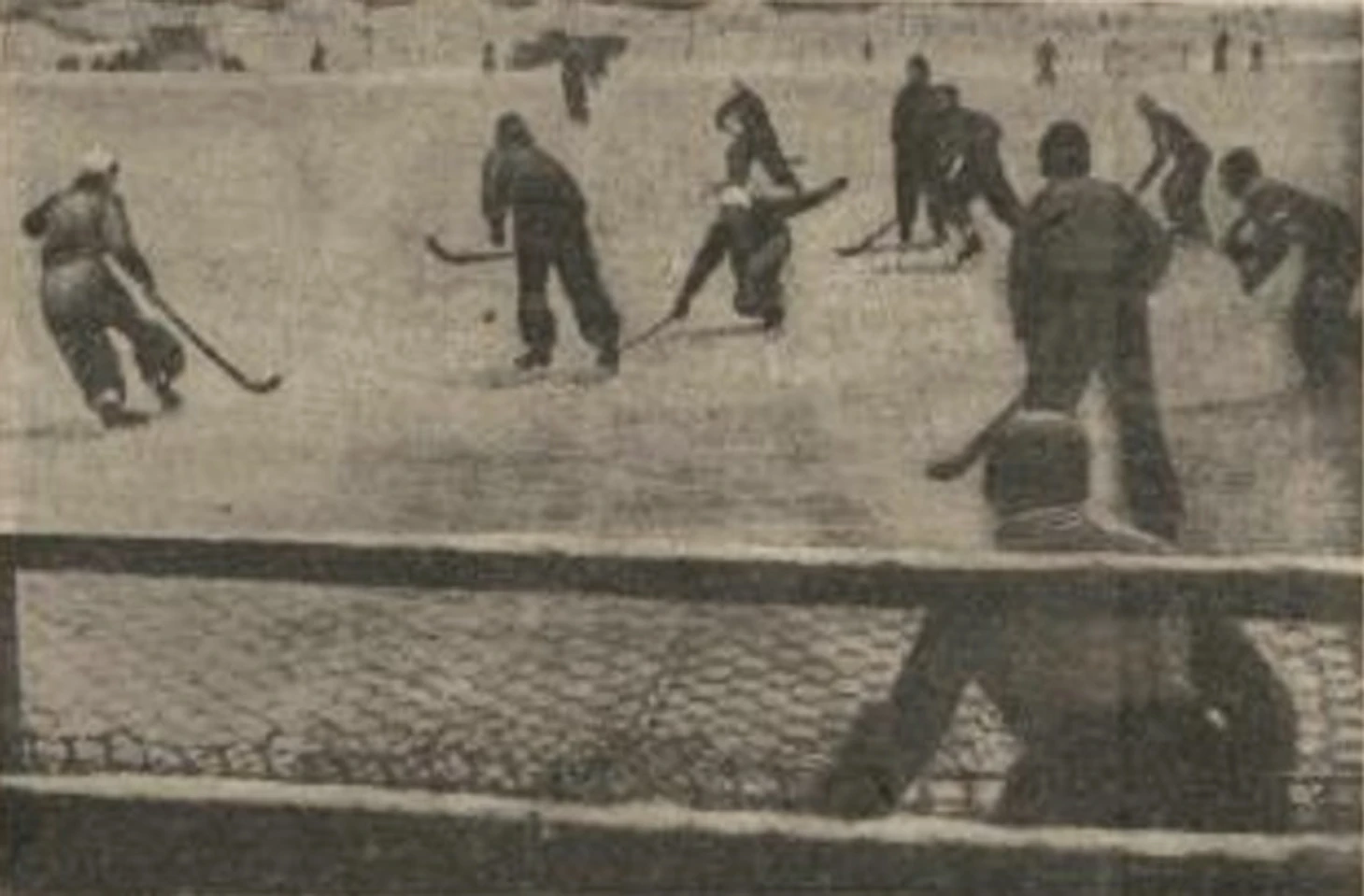 6 марта 1938 года. Москва. Стадион «Динамо». Спортивный праздник, посвященный окончанию розыгрыша Кубка СССР по хоккею. Москва - Ленинград - 2:1 (фото Фетисова и Яблоновского из газеты «Вечерняя Москва» за 8 марта 1938 года)