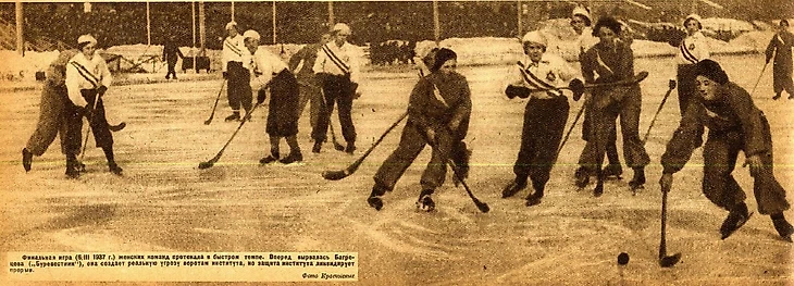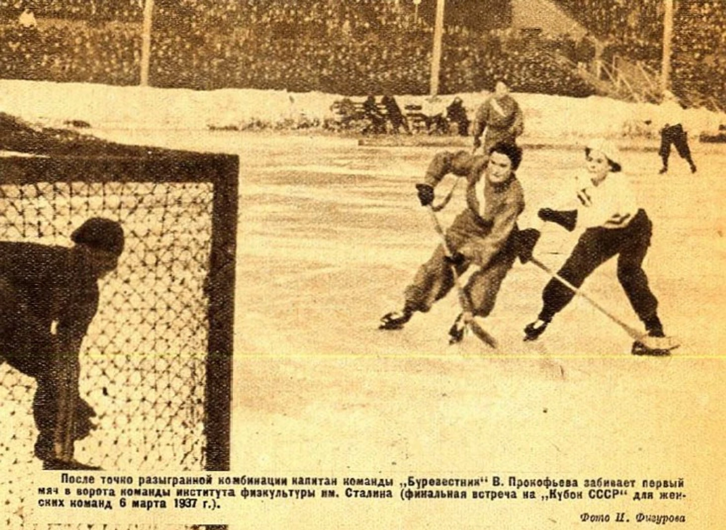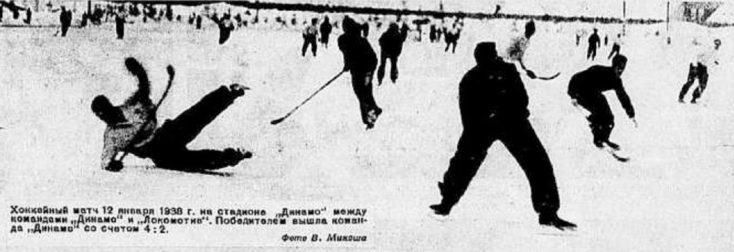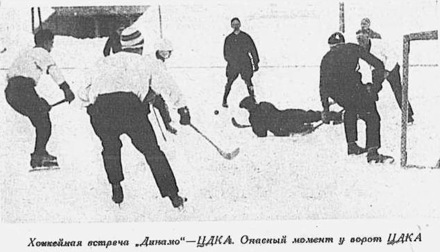 «Завтра на стадионе «Динамо» состоится большой спортивный праздник, посвященный окончанию розыгрыша «Кубка СССР» по хоккею. Как мы уже сообщали, оба «Кубка СССР» выиграли московские хоккеисты - женская команда «Буревестника» и мужская команда «Динамо». Спортивный праздник начнется в час дня торжественным парадом хоккеистов. После парада лучшим хоккейным командам Советского Союза, второй год подряд выигрывающим «Кубок СССР», будут вручены два хрустальных кубка, затем состоится товарищеская встреча хоккеистов Москвы и Ленинграда. Первыми на лед выйдут женщины - сборная Москвы и сборная Ленинграда. В заключение праздника состоится товарищеский матч мужских сборных команд Москвы и Ленинграда. Ленинградские хоккеисты - участники спортивного праздника на «Динамо» - сегодня утром уже приехали в Москву. Состав мужской сборной команды Москвы следующий: Петров («Торпедо»), Горохов («Спартак») и Коротков («Динамо»), Виноградов (ЦДКА), Квашнин, Кривоносов, Рдультовский («Спартак»), Медведев, Якушин, Поставнин («Динамо») и Рябов (ЦДКА)» (газета «Вечерняя Москва» за 5 марта 1938 года).