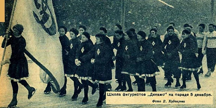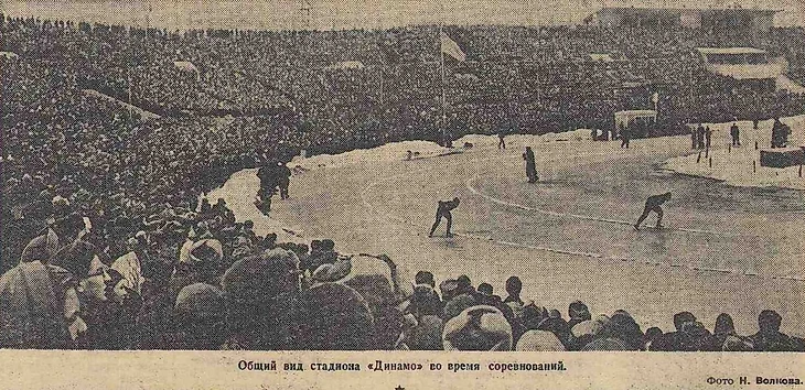 11-12 февраля 1950 года. Москва. Стадион «Динамо». Чемпионат мира по конькам среди женщин (фото Н. Волкова из газеты «Советский спорт» за 14 февраля 1950 года)
