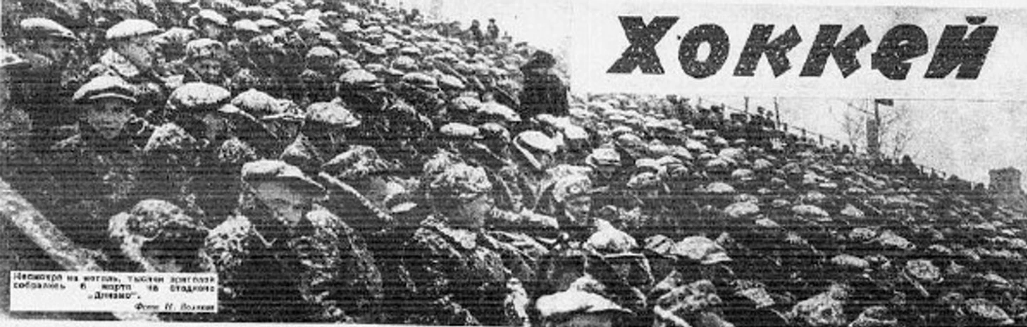 6 марта 1938 года. Москва. Стадион «Динамо». Зрители на спортивном празднике, посвященный окончанию розыгрыша Кубка СССР по хоккею и включавший в себя «торжественный парад хоккеистов», вручение Кубков и две игры между мужскими и женскими сборными Москвы и Ленинграда (фото Н. Волкова из журнала «Физкультура и спорт» № 6 за март 1938 года)