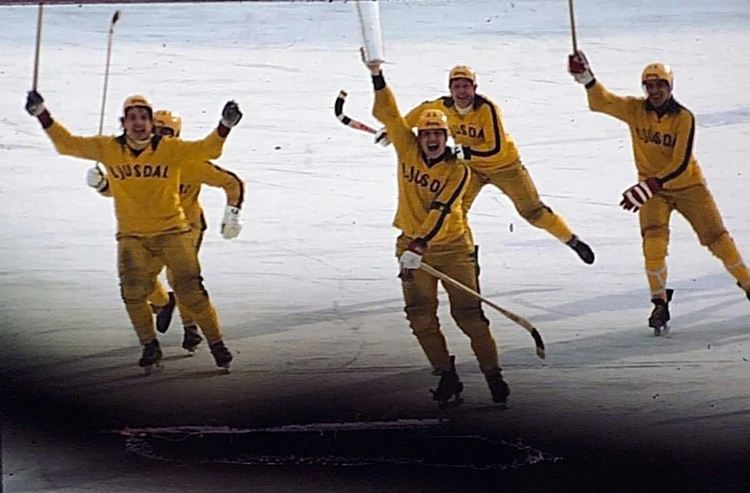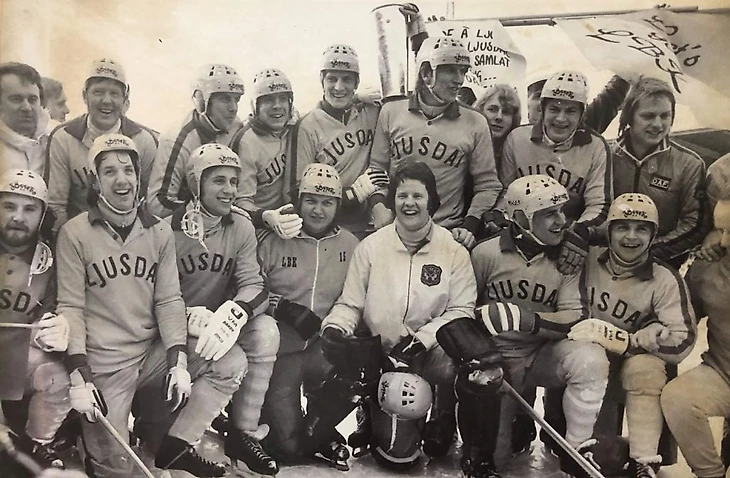 16 марта 1975 года. Стокгольм. Стадион «Сёдерстадион». Чемпионат Швеции. Финал. «Юсдаль» (Юсдаль) - «Вилла» (Лидчёпинг) - 8:4. Чемпионы из «Юсдаля» (фото Стига Андерссона / bandyfeber.com)