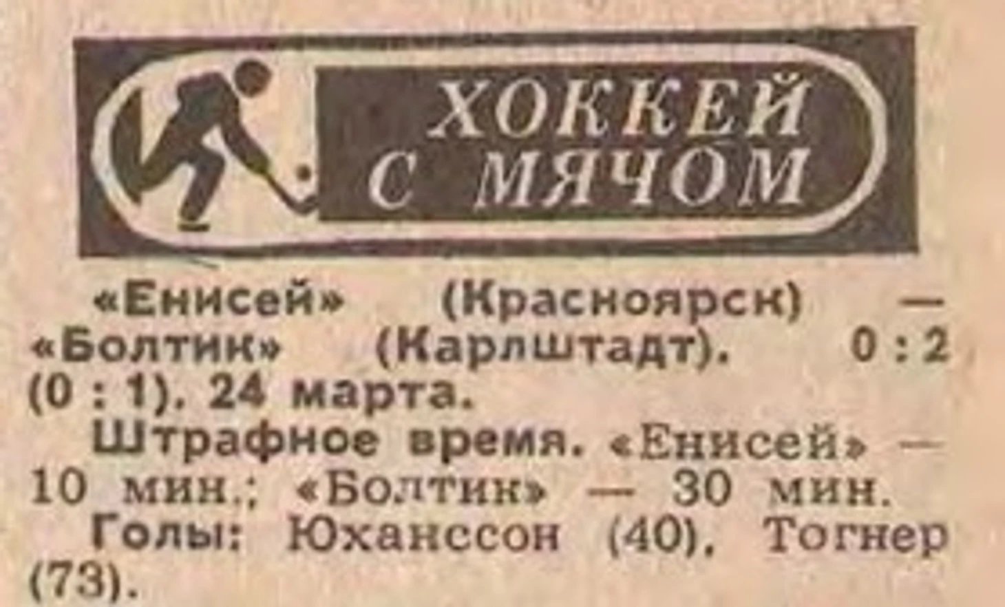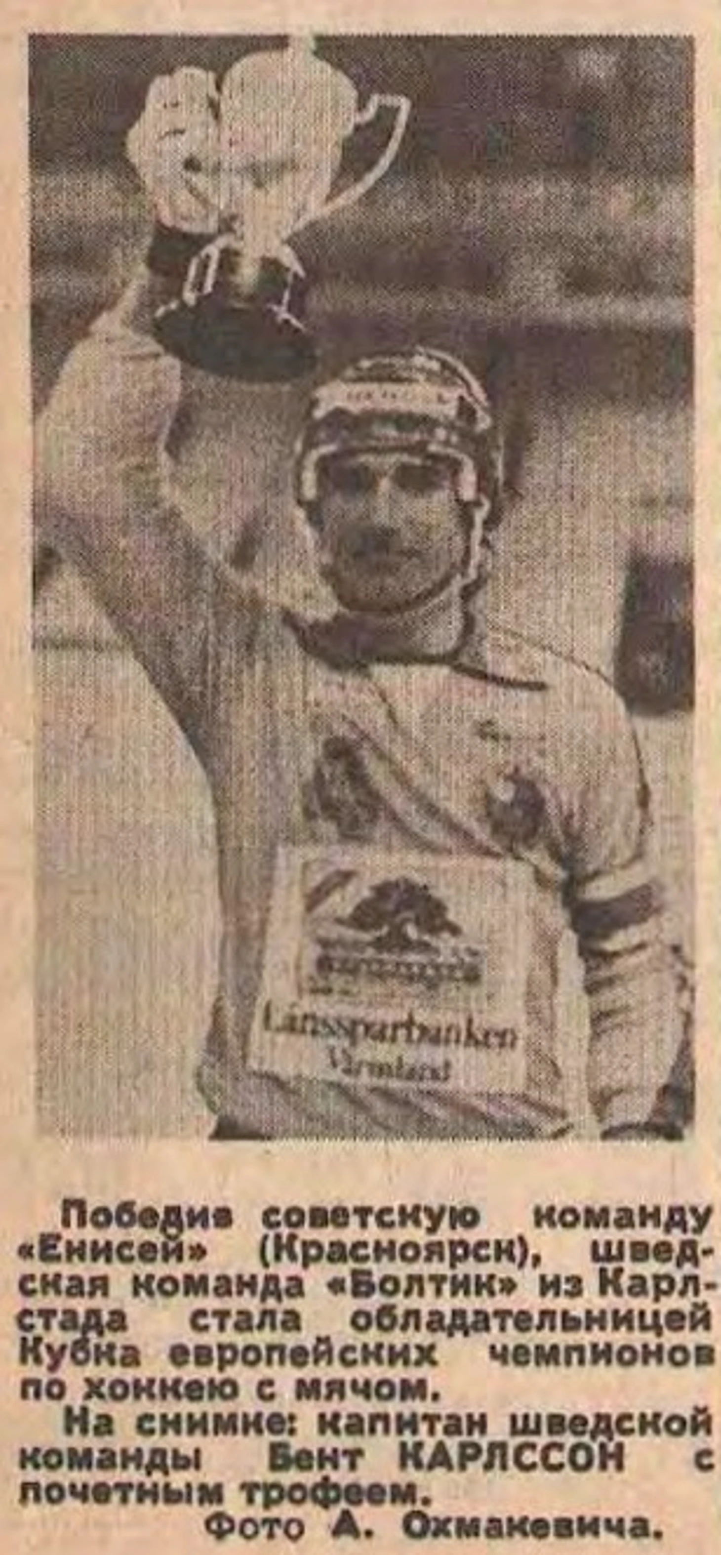 В советском хоккее с мячом началась эра красноярского «Енисея», а в шведском годом ранее - «Болтика» (получил название в честь британских футбольных клубов «Болтон» и «Селтик» ) из Карлстада.