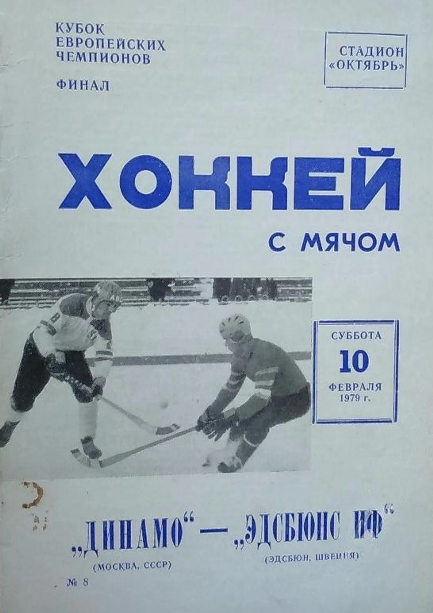 10 февраля 1979 года. Москва. Стадион «Октябрь» (ул. Живописная, 21). Кубок европейских чемпионов 1978/79. Финал. Первая игра. «Динамо» (Москва) - «Эдсбюн» (Эдсбюн) - 5:1