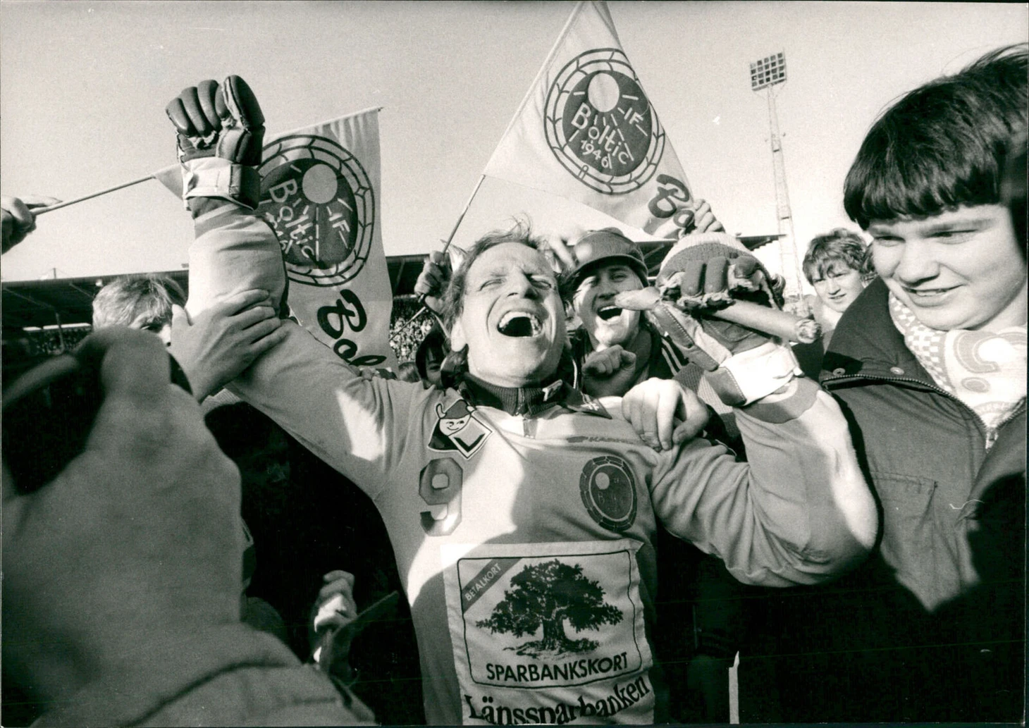 20 марта 1983 года. Стокгольм. Стадион «Сёдерстадион». Чемпионат Швеции. Финал. «Болтик» (Карлстад) - «Вилла» (Лидчёпинг) - 5:0 (основное время 0:0). Радость Бенгта Рамстрёма (ebay.com)