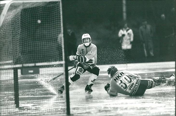 Вторая половина 1970-х. Швеция (?). Игрок сборной СССР Сергей Ломанов (фотограф Уве Артурссон)
