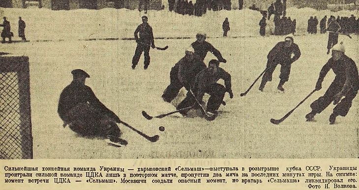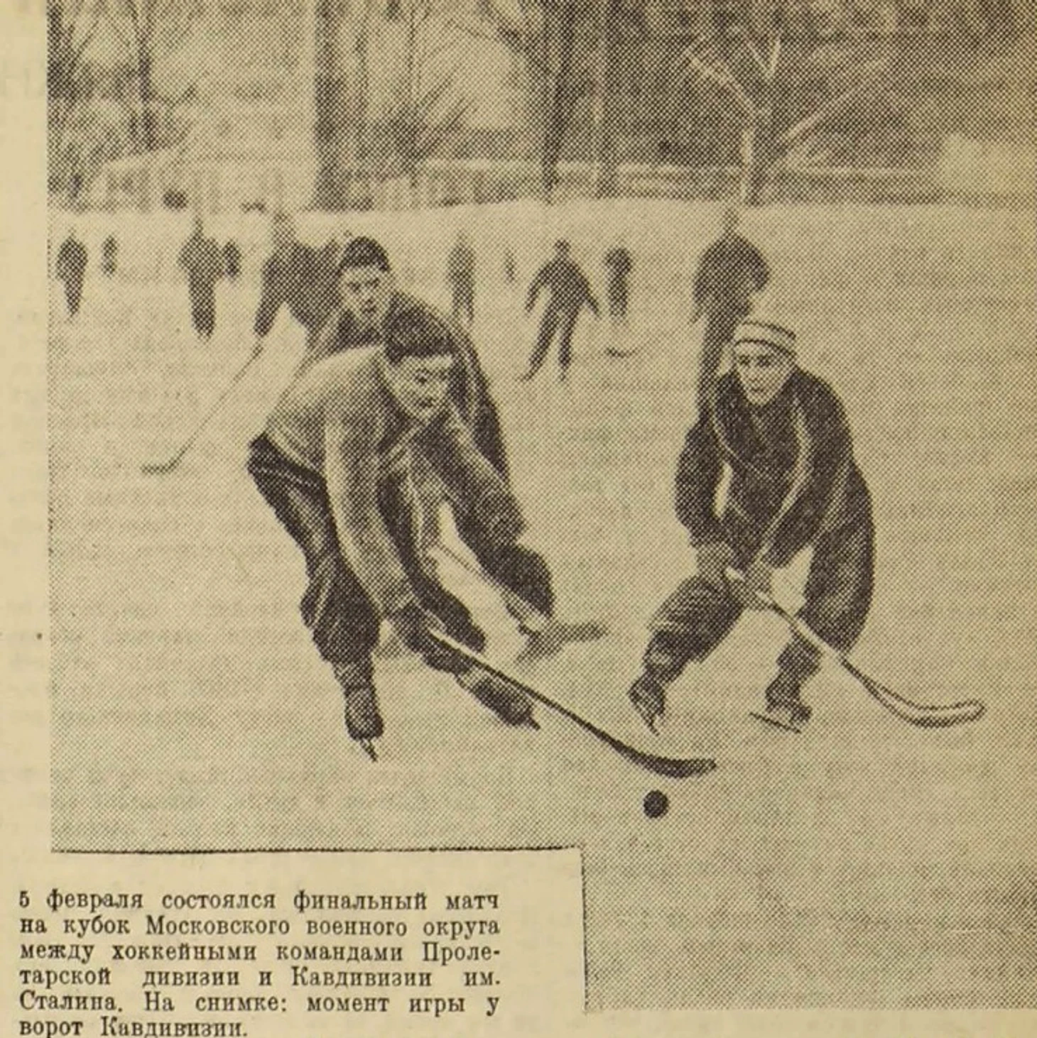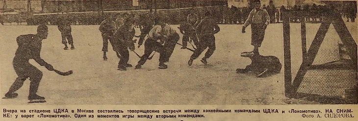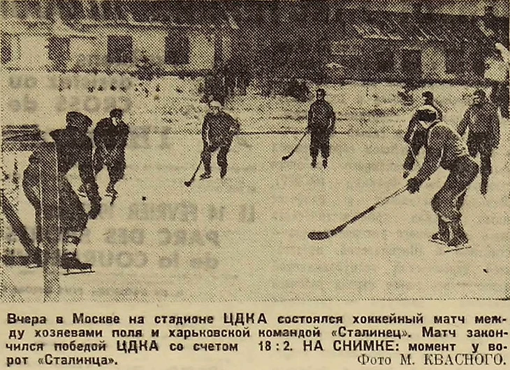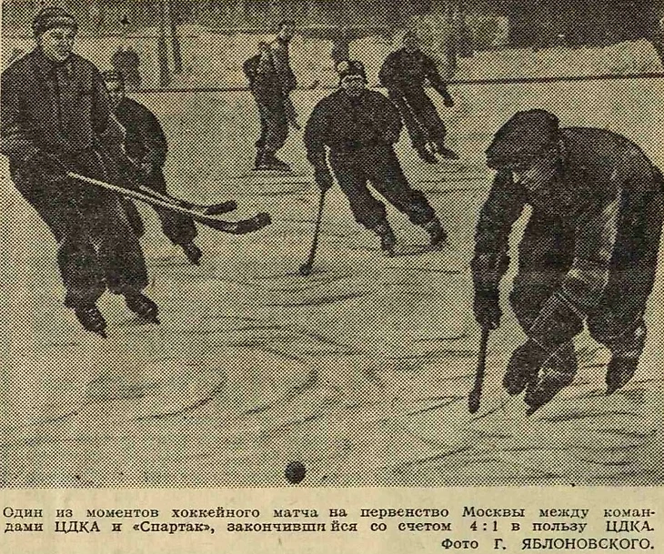 25 января 1946 года. Москва. Каток парка ЦДКА. Кубок Москвы. 1/8 финала. ЦДКА - «Крылья Советов» (завод № 45) - 13:0 (фото Г. Яблоновского из газеты «Вечерняя Москва» № 22 от 26 января 1946 года)