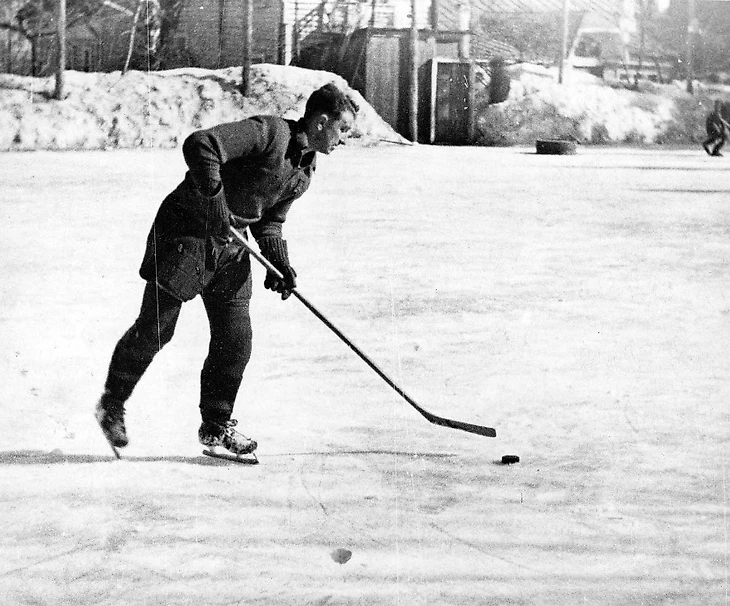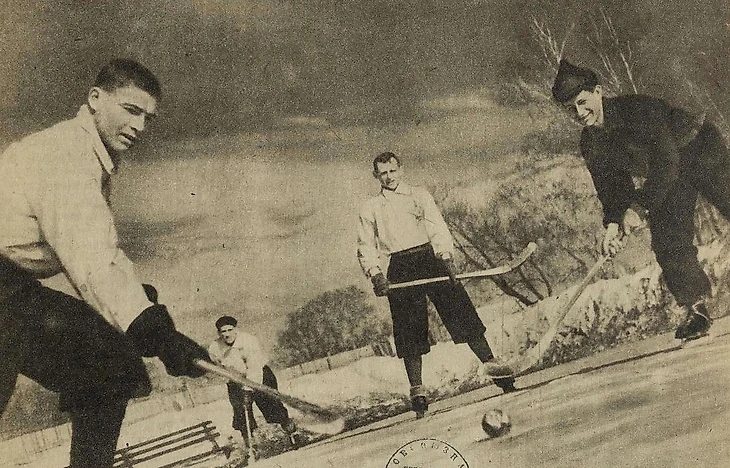 Ноябрь 1934 года. Пруд парка ЦДКА (?). Фотоэтюд Дебабова и Зельмы «Хоккеисты» (журнала «Физкультура и спорт» № 23 за декабрь 1934 года)