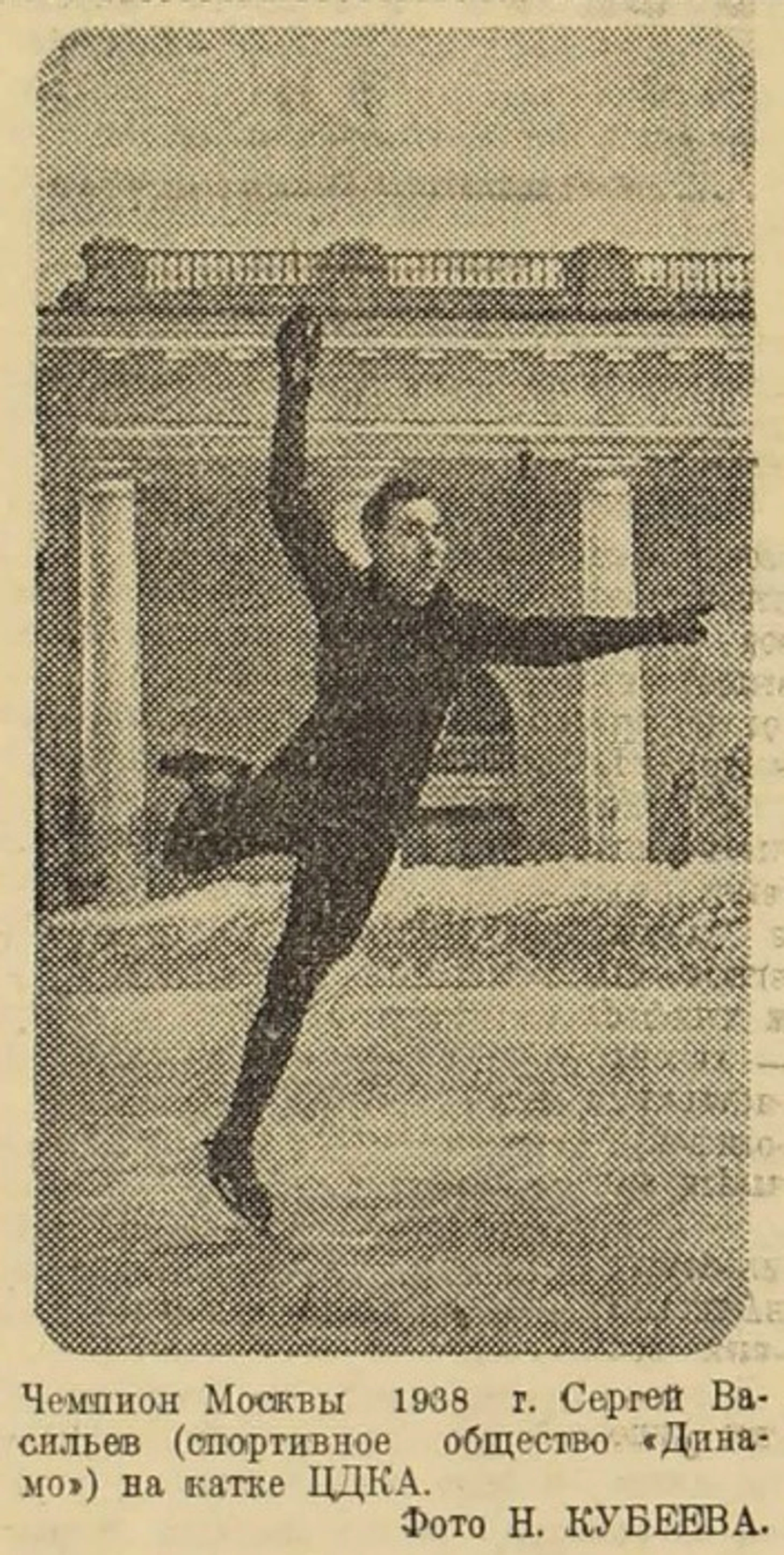 Февраль 1939 года. Парк ЦДКА. Выступление чемпиона Москвы 1938 года по фигурному катанию динамовца Сергея Васильева на фоне теннисного стадиона ЦДКА (фото Н. Кубеева из газеты «Красный спорт» за 21 февраля 1939 года)