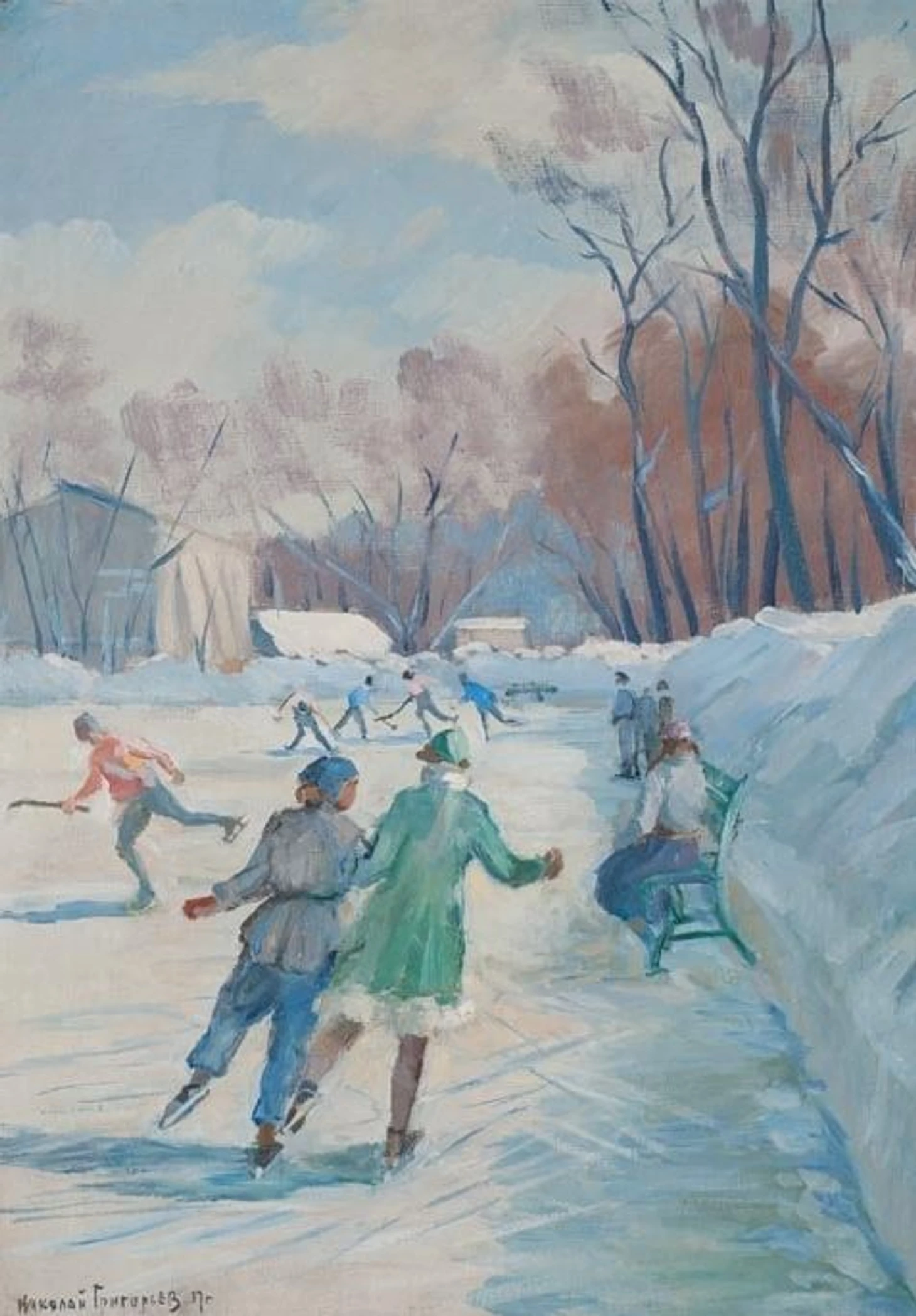 1937 год. Николай Григорьев. «На катке в московском парке». И это, наверное, парк ЦДКА