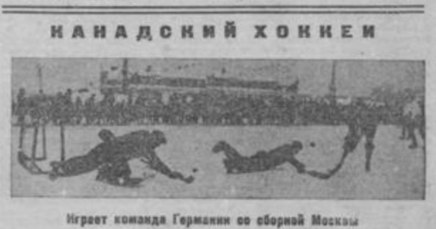 В конце двадцатых годов в Финляндии, хоккеисты которой являлись самыми сильными и мастеровитыми оппонентами советских, началась очередная волна шпиономании и всплеска антикоммунистических настроений. Под давлением националистического праворадикального протофашистского и проклерикального движения Лапуа (в честь одноименного населенного пункта), власти Финляндии в числе прочих запретили деятельность более полутора сотен рабочих спортивных клубов, их «зонтичной» организации ТИК (TYK / Työläisurheilun Yhtenäisyyskomitea [тюёляйсурхейлун ихтеняйсюскомитеа], дословно - рабочего спортивного единства комитет / «Комитет рабочего спортивного единства») и спортивного журнала «Тюёвяен урхейлулехти». Все они были упразднены и распущены, имущество конфисковано, а их ряд видных деятелей оказались за решеткой. В результате играть в хоккей в Финляндии нашим стало не с кем*. И тогда руководители советского спорта, чтобы не оставлять хоккеистов без международных контактов, обратили внимание на рабочие спортивные объединения Германии. Немцы уже не играли в «европейский» хоккей (он же «наш», «советский», а позднее и «русский»), а только в «канадский» и значительно уступали по классу финнам, которые развивали обе разновидности ледовой игры. Так в феврале 1930 года встреча между сборными Финляндии и Берлина по канадскому хоккею под крышей берлинского «Спортпаласа» в рамках Международных зимних спортивных состязаний Красного спортинтерна (по сообщениям финской прессы изначально на катке в Берлине были запланированы соревнования по jääpallo (хоккею с мячом; jääpallo дословно ледовый шар; хоккей с шайбой - ледовый хоккей - jääkiekko) закончилась убедительной победой северян - 16:1. Вот и в Москве хоккеисты сборной Германии Kampfgemeinschaft für Rote Sporteinheit [кампфгемайншафт фюр роте шпортайнхайт] / KGfRSE / «Боевое содружество за красное спортивное единство» или / Rotsport [ротшпорт] / «Красный спорт»), приехавшие в Москву вместе с лыжниками, конькобежцами и прыгуном с трамплина, выступили в силу своих скромных возможностей (на катке ЦДКА: 24 февраля с ЦДКА - 0:3 и 26 февраля со сборной Москвы - 0:6, а также на стадионе завода «Серп и молот» в Сивяковом переулке: 6 марта со сборной Москвы - 0:8).