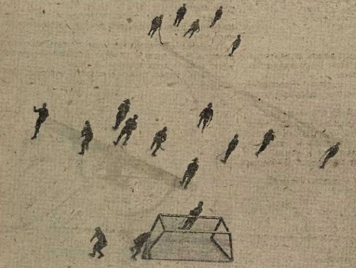28 февраля 1932 года. Каток ЦДКА. Сборная Москвы - сборная Германии - 6:0. В атаке москвичи (газета «Спартак» (Ленинград) № 1 (11) за 12 марта 1932 года)