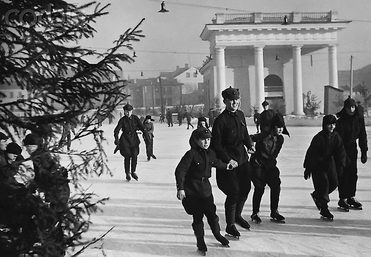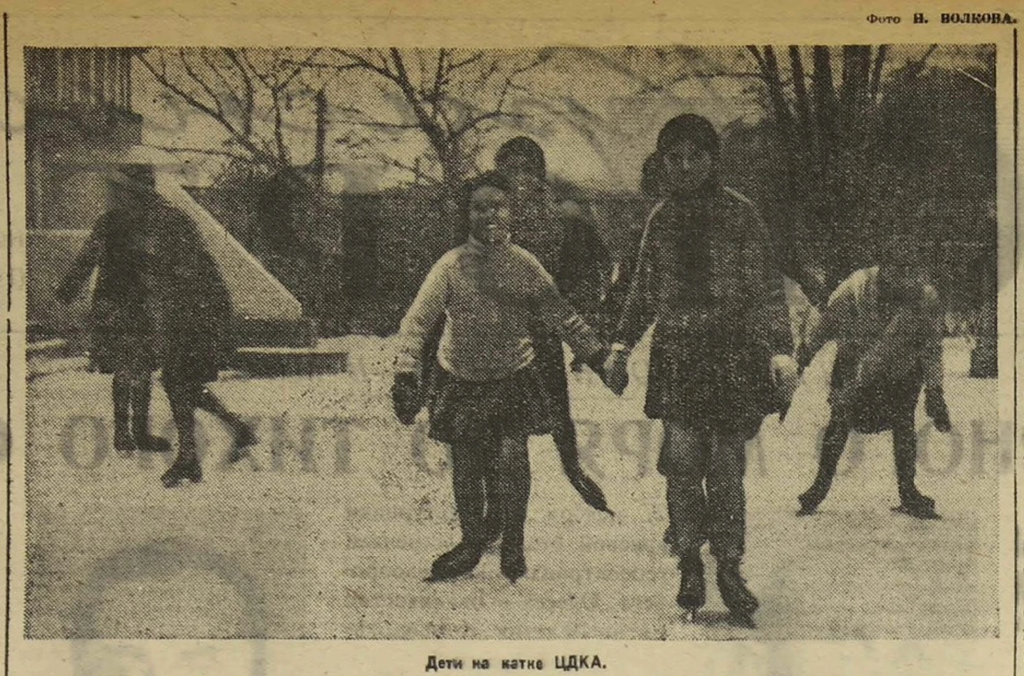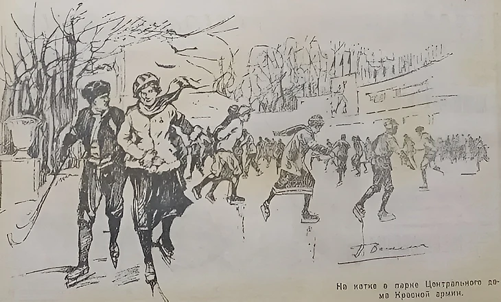 Ноябрь 1935 года. Парк ЦДКА. «Дети на катке ЦДКА» (фото Н. Волкова из газеты «Красный спорт» № 101 за 29 ноября 1935 года)
