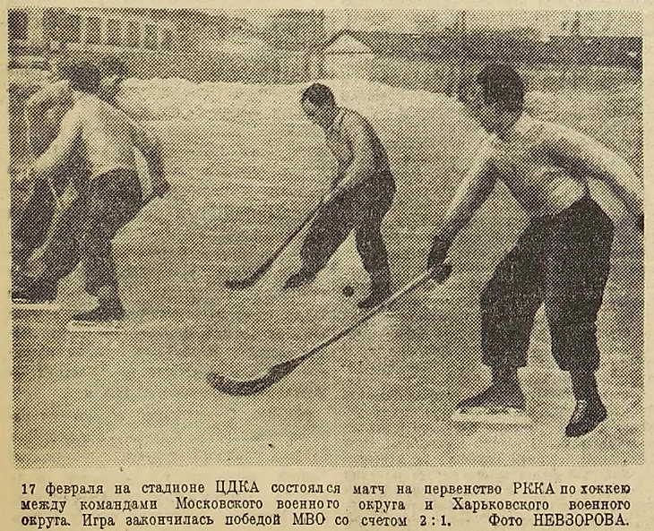 17 февраля 1939 года. Парк ЦДКА. Первенство РККА. Московский военный округ - Харьковский военный округ - 2:1 (фото Невзорова из газеты «Красный спорт» за 21 февраля 1939 года)