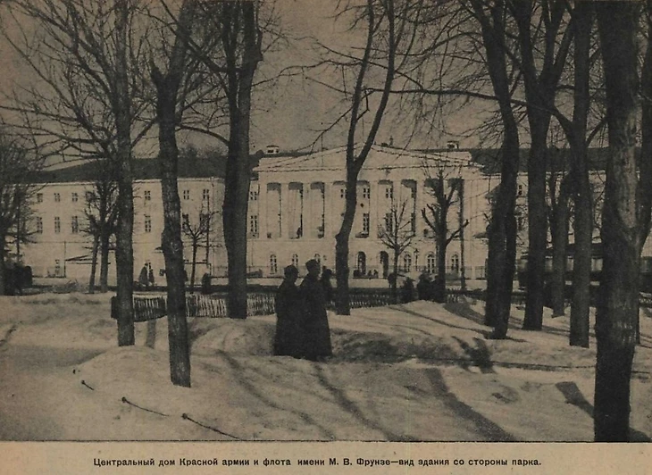 1929 год. Вид на главное здание ЦДКА со стороны парка (снимок из литературно-художественного и культурно-бытового иллюстрированного журнала рабочей молодежи «Смена» № 3 за февраль 1929 года)