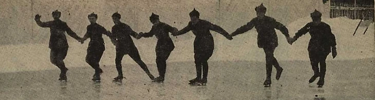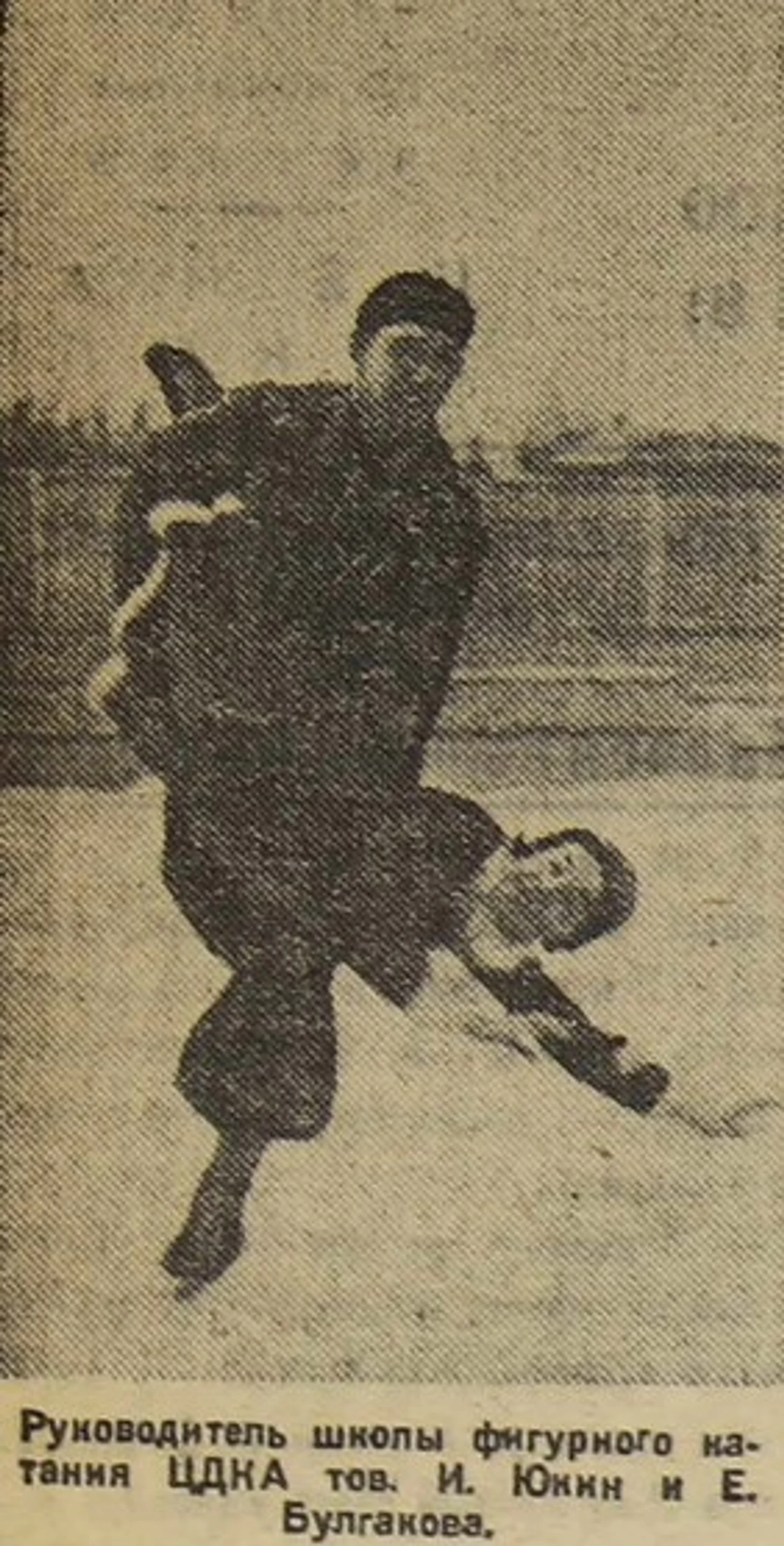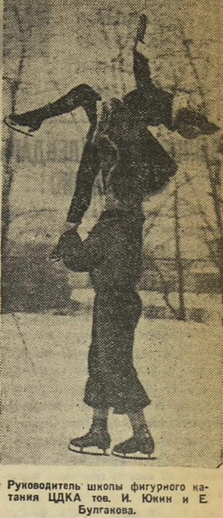 Ноябрь 1935 года. Парк ЦДКА. Фигурное катание на катке ЦДКА (фото Н. Волкова из газеты «Красный спорт» № 100 за 27 ноября 1935 года)