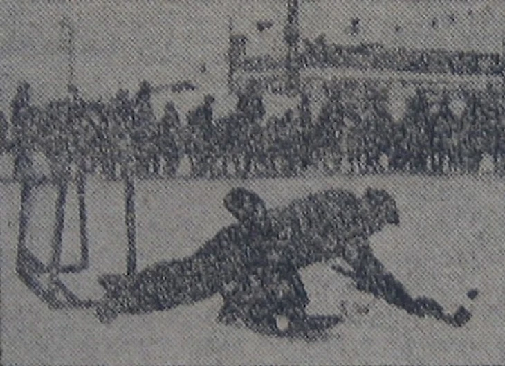 28 февраля 1932 года. Каток ЦДКА. Сборная Москвы - сборная Германии - 6:0. В игре немецкий вратарь Ганс Эрфурт (газета «Спартак» (Ленинград) № 1 (11) за 12 марта 1932 года)