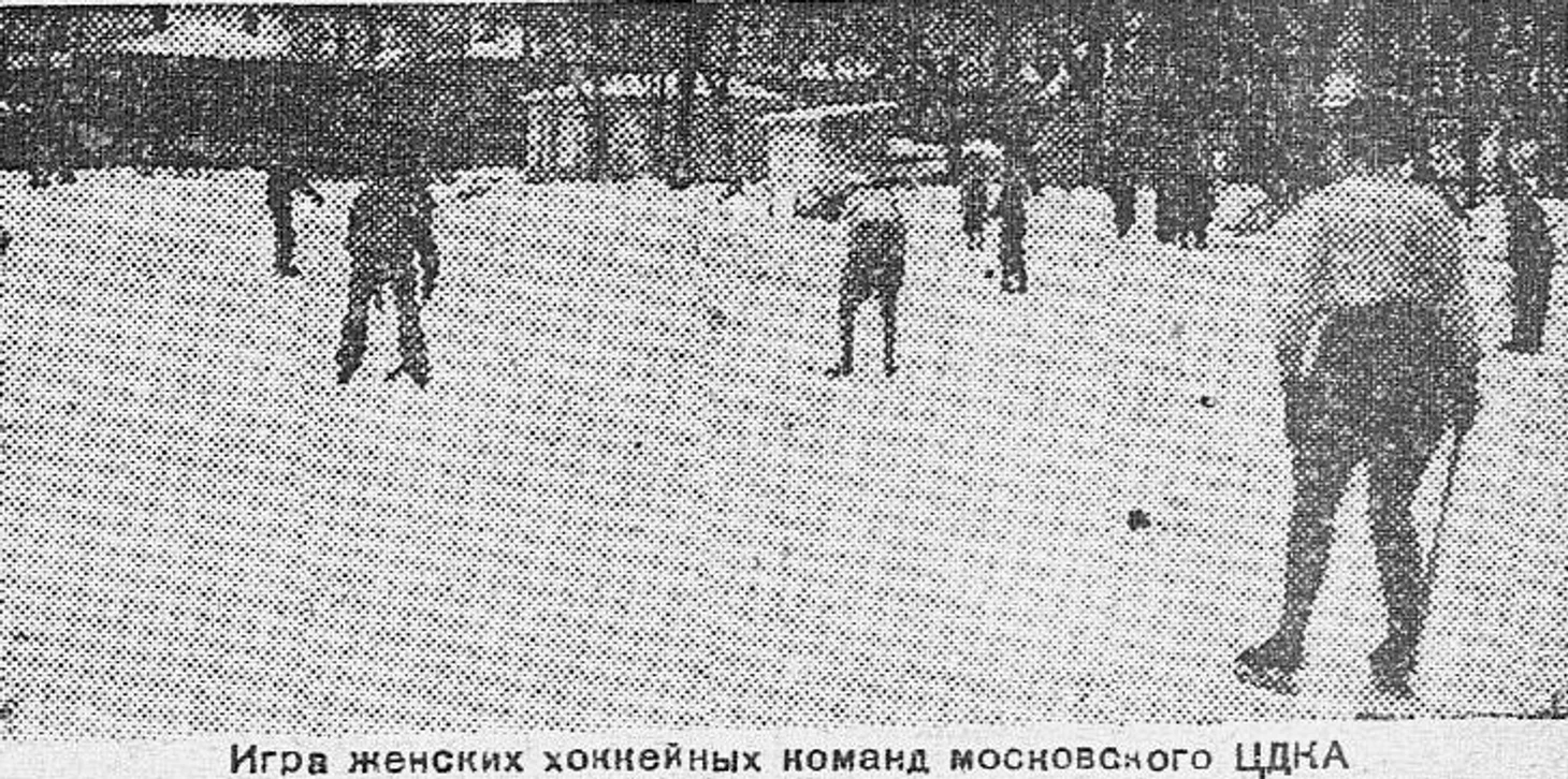 Январь 1933 года. Парк ЦДКА (?). Играют женские команды (газета «Спартак» орган Ленинградского областного совета физкультуры № 3 за 18 января 1933 года)