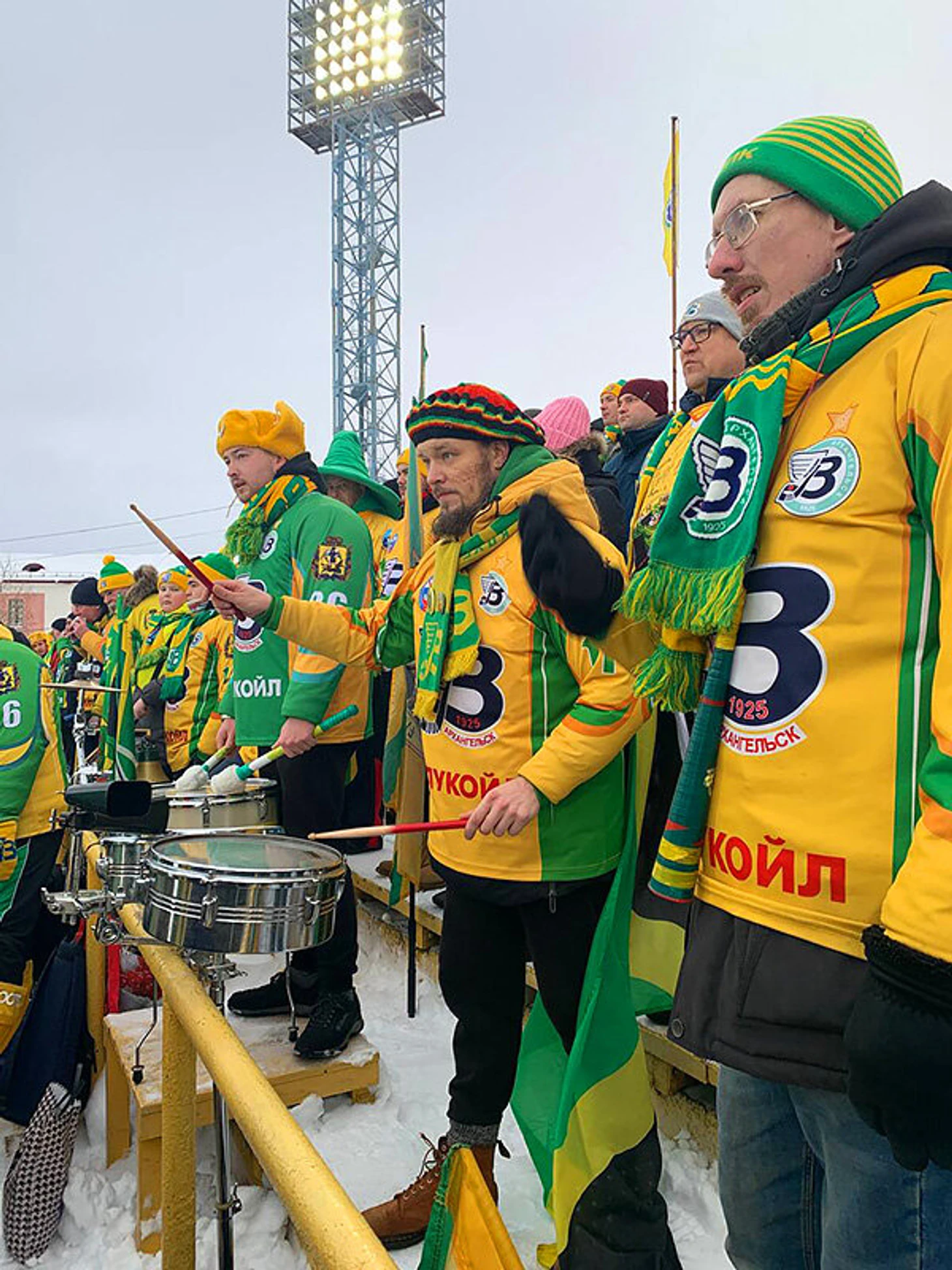 В России десятки никому не нужных клубов, и ежегодно в пустоту проходят сотни турниров. Я был готов увидеть что-то подобное в Архангельске. Но перед матчем все вокруг стадиона «Труд» пожелтело и позеленело. Яркие цвета разгоняли январскую тоску и город, кажущийся пустынным, ожил.
