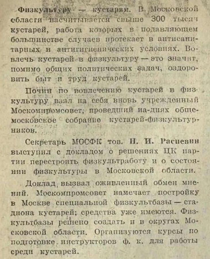 ** - Московская губерния стала областью 14 января 1929 года, следовательно, Пашинцев/Пашенцев около уже года не входил в руководство московского пищевого профсоюза; облотдел ВСРПВП на собрании представлял «тов. Розин» - областной инструктор по физкультуре