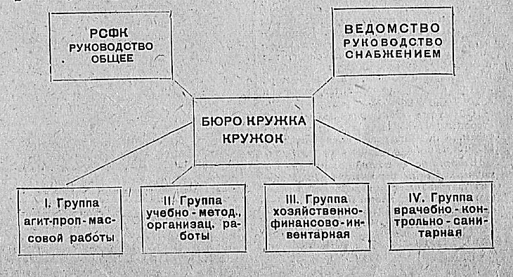Схематичное построение кружка физкультуры (газета «Спартак» орган Ленинградского областного совета физкультуры № 10 за 5 апреля 1930 года)