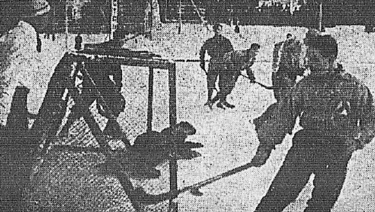 2 марта 1930 года. Хельсинки. Залив Элейнтарханлахти. Каток «Тюёвяен луйстинрата». Сборная Финляндии TYK - сборная Москвы - 2:2 (0:1). «Совместная фотография команд, игравших в хоккейном матче» (газета «Тюёвяеньярьестёен тиедонантая» от 3 марта 1930 года)