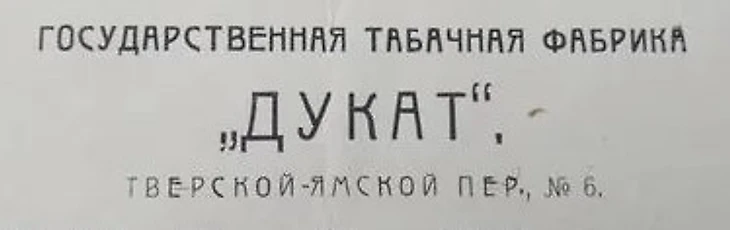 1924 год. Фрагмент бланка Государственной табачной фабрики «Дукат»