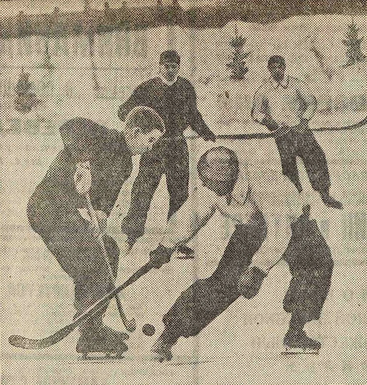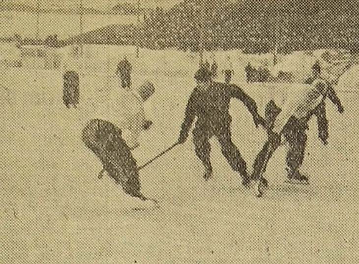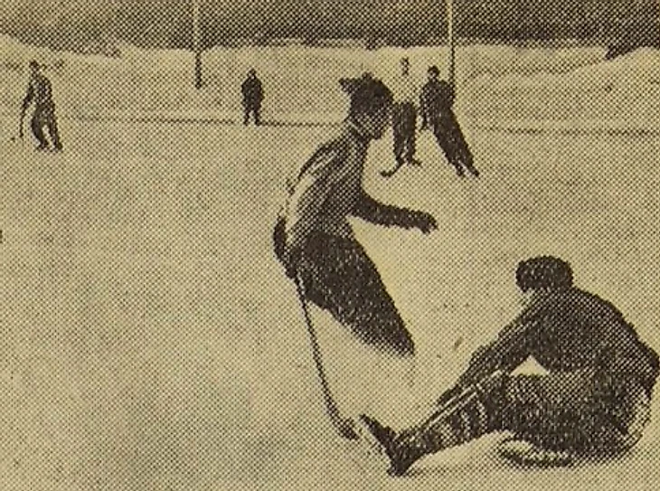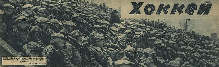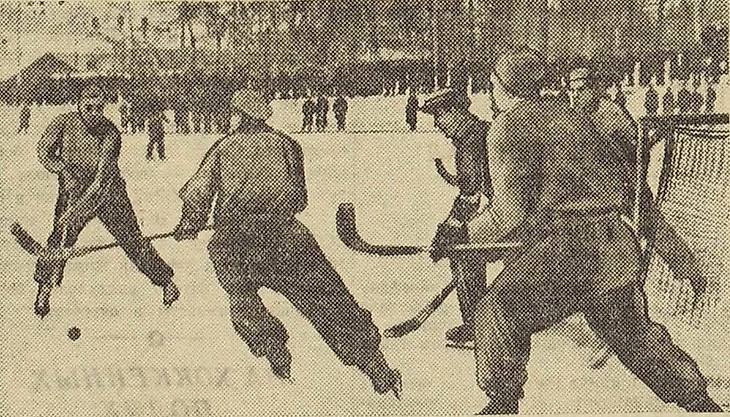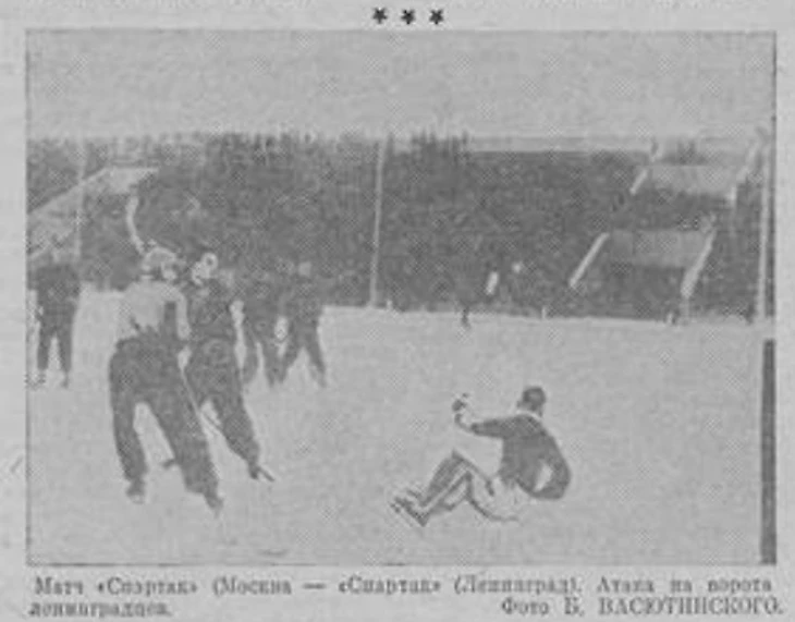 6 марта 1938 года. Москва. Стадион «Динамо». 30 000 зрителей Москва - Ленинград - 2:1 (2:0). «Последний хоккейный матч сезона» (фото И. Фетисова и Г. Яблонского из газеты «Вечерняя Москва» от 8 марта 1938 года)