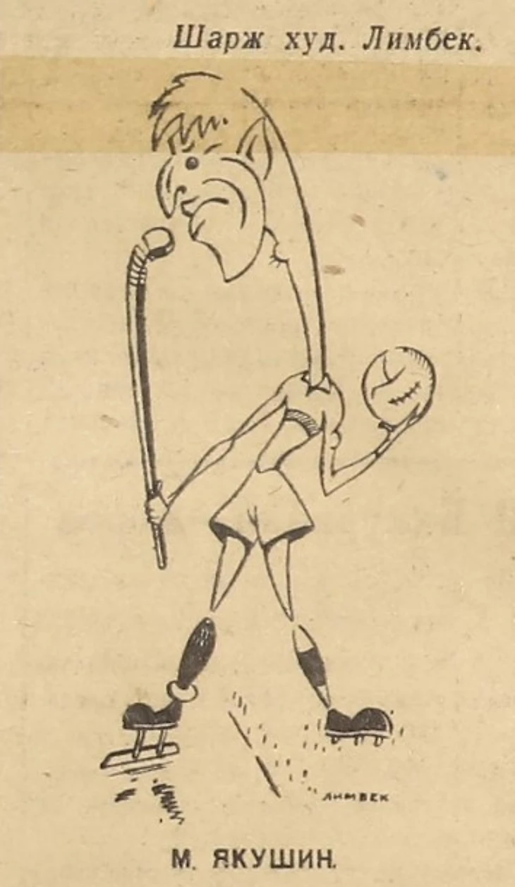1932 год. Иван Скамейкин - левый крайний нападающий команды «Серп и молот». «Как должен работать хоккеист, серьезно берущийся за игру? Тренироваться необходимо регулярно и обязательно под руководством опытного игрока, не подолгу, тренировка по 3-4 часа ничего, кроме вреда, не приносит. Каждый игрок обязан посещать собрания секции, на которых детально обсуждают игру каждого игрока и команды в целом, и наблюдать за хорошими играми, которые дают ряд правильных и показательных комбинаций - проводки мяча к воротам противника. За день до матча я обыкновенно прихожу на стадион и тренирую удары по воротам, после чего проделываю несколько раз рывки метров по 30 с быстрой остановкой, обычно с мячом и клюшкой. В заключение прохожу быстро один круг. Перед началом сезона необходимо устраивать кроссы, прекрасно подготовляющие к сезону, и начинать регулярную тренировку до льда по земле. Вот те основные пункты, которые способствуют по моему повышению класса игры. В основном, идя этим путем, я сам довольно быстро достиг высокого класса» (журнал «Физкультура и спорт» № 28-30 за 1932 год)