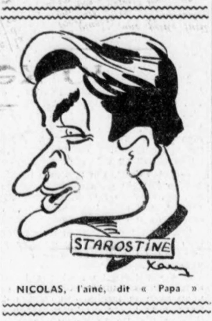 Август 1937 года. Николай Старостин. «Старостин Николя, старший, которого называют «Папой» (шарж из парижского еженедельника «Спорт» от 18 августа 1937 года)