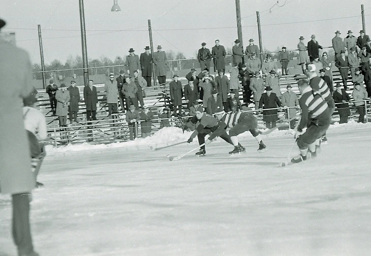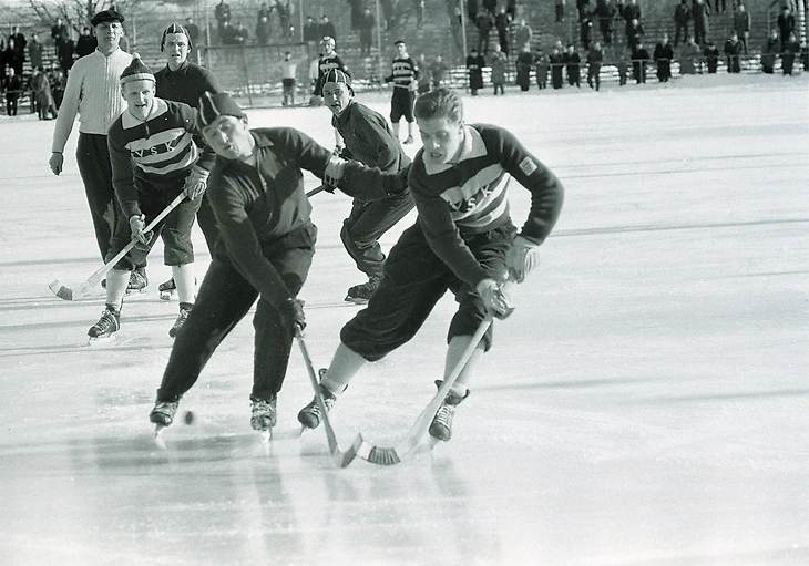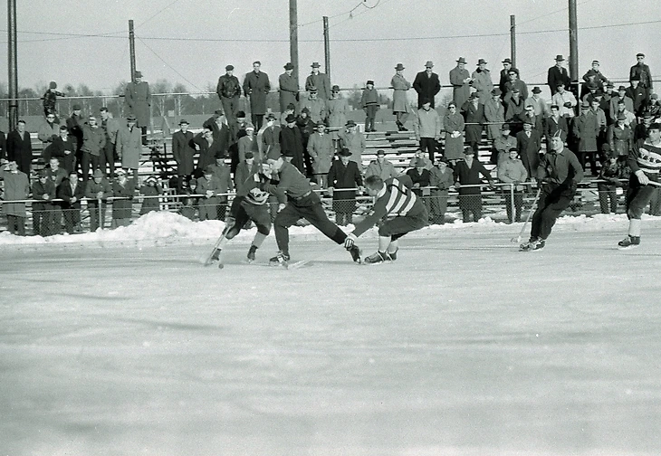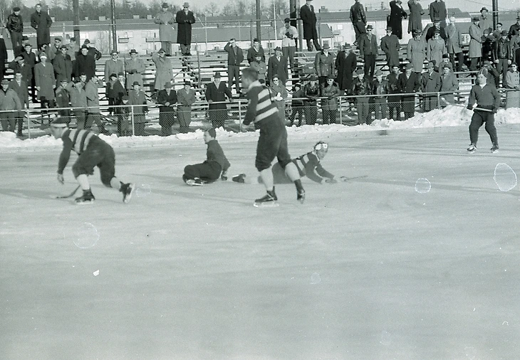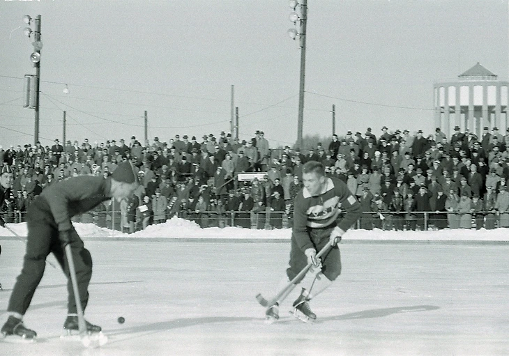 23 марта 1958 года. Швеция. Вестерос. Стадион «Роклунда» (искусственный лед). 1 588 зрителей. СК «Вестерос» (Вестерос) - СКВО (Свердловск) - 4:6 (1:2). Фотограф Оке Ларссон (Åke Larsson) / digitaltmuseum.se