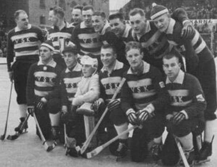 Февраль 1960 года. СК «Вестерос» (Västerås Sportklubb / VSK) - победитель чемпионата Швеции по хоккею с мячом 1959/60 годов - нижний ряд (справа налево): Бенгт Берглинд/Bengt Berglind, Генри Олссон/Henry Ohlsson, Нильс-Улоф Йонссон/Nils-Olof Jonsson, Уве Альмрот/Ove Almroth, Мальте Эйдхаген/Malte Eidhagen и Лейф-Йёсте Эрикссон/Leif-Göte Eriksson; верхний ряд (справа налево): Леннарт Фернгрен/Lennart Ferngren, Гуннар Янссон/Gunnar Jansson, Стиг Линдберг/Stig Lindberg, Эрик Берглунд/Erik Berglund, Бернт Васберг/Bernt Wasberg, Свен-Эрик Бруберг/Sven-Erik Broberg, Миша Покоста/Mischa Pokosta и Нильс Андерссон/Nils Andersson (vskbandy.se)