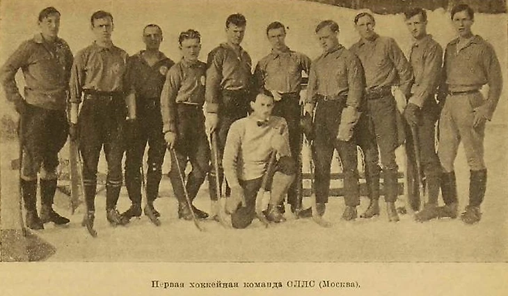 1923 год. Хоккейная команда Общества любителей лыжного спорта / ОЛЛС (журнал «Известия спорта» № 5 за март 1923 года)