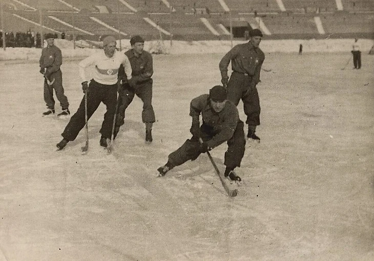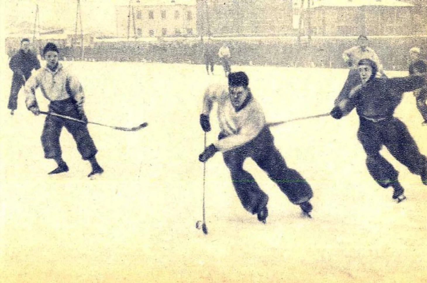 24 ноября 1936 года. Москва. Каток парка ЦДКА (Площадь Коммуны). Товарищеская игра. ЦДКА - «Локомотив» - 1:3 (фото С. Красинского из «Физкультура и спорт» № 35 за декабрь 1936 года)