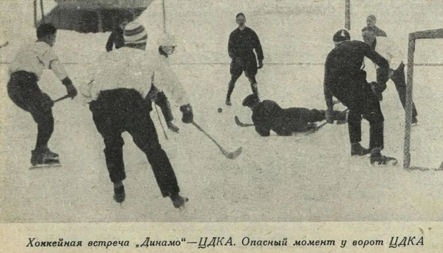 20 февраля 1936 года. Москва. Стадион «Динамо». Первенство СССР. Подгруппа «А». 2 тур. «Динамо» (Ленинград) - ЦДКА - 3:1 (3:1). «В хоккейном первенстве СССР принимает участие команда Центрального дома Красной армии. Молодые бойцы частей московского гарнизона с честью выступают в соревнованиях с сильнейшими хоккейными коллективами страны. Вратарь ЦДКА Чесалов берет трудный мяч» (фото И. Фигурова из газеты «Красный спорт» № 27 от 23 февраля 1936 года)